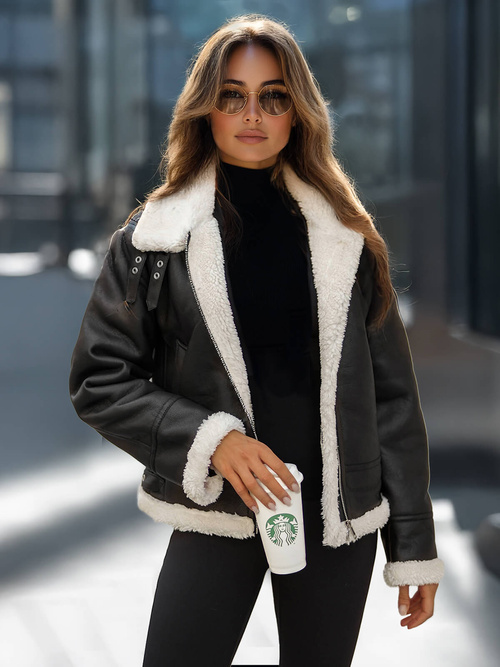 Női bőrdzseki fekete-bézs OZONEE JS/11Z8177
