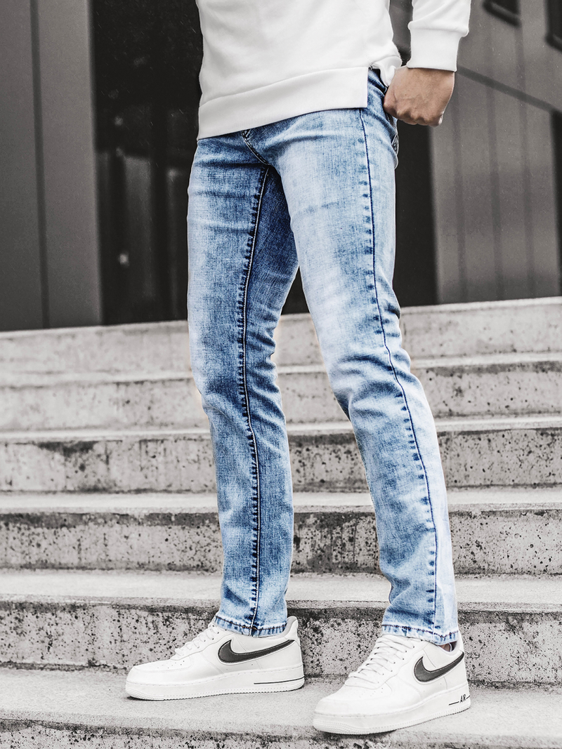 A farmernak elülső és hátsó, praktikus zsebei vannak. Lábait párolt minta borítja. Pamut, poliészter és elasztán keverékéből készült. Emiatt jól követi a test vonalát, kellemes tapintású és kényelmes viseletű, valamint mindez lehetővé teszi hogy ellenálló legyen a sérülésekkel és gyűrődésekkel szemben, valamint hogy az idő múlásával ne nyúljon ki.
