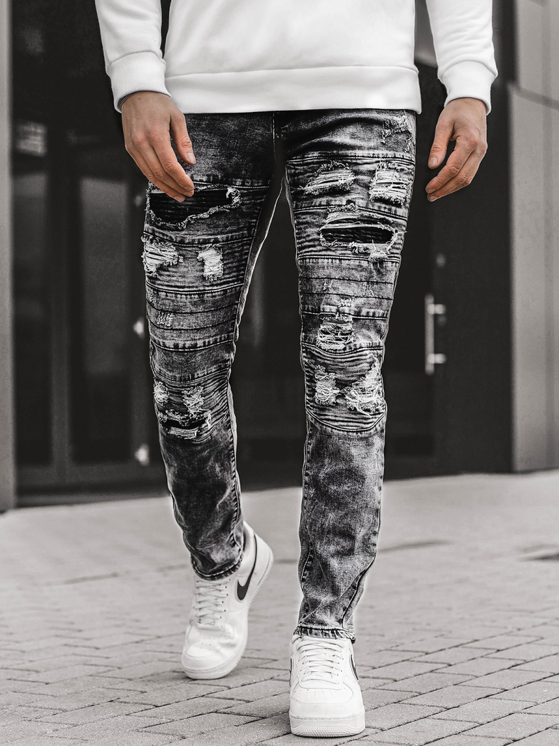 Egy ilyen farmer nagyszerű módja annak, hogy egyedi, kauzál stílus öltsön magára. Nagyon jól néz ki online áruházunk további ruházati termékeivel együtt. Kombinálhatja például nyomtatott pólóval, bőrkabáttal és sneakerscipővel. Sokféle alkalomra használható - barátokkal való találkozóra, koncertre vagy partira.