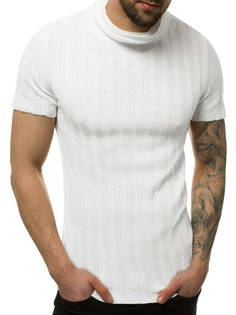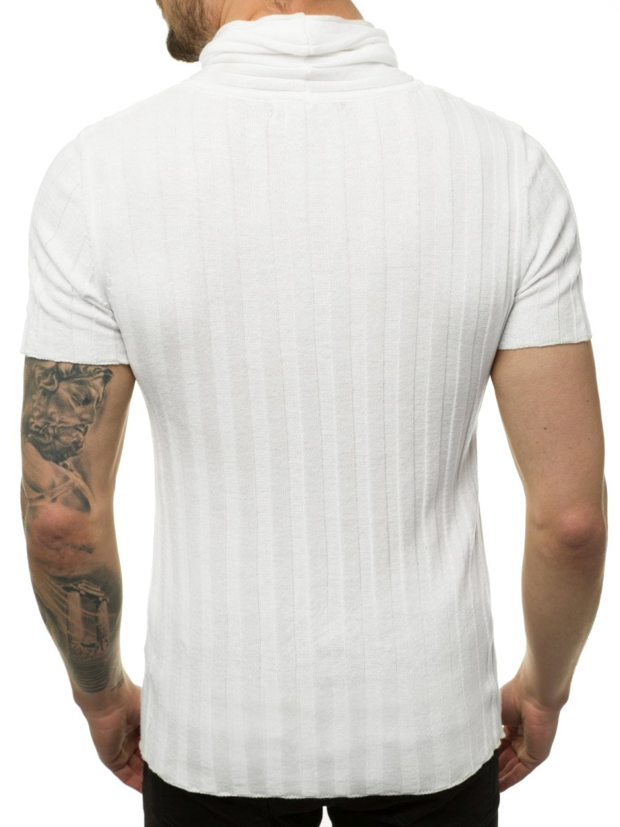 Ez a pulóver rövid ujjú, minek köszönhetően a kissé melegebb napokon is viselhető. Csíkos mintával rendelkezik. Egyedi kinézetét a gallérja adja. Pamut, akril és viszkóz keverékéből készült, mi következtében jól követi a test vonalát, kellemes tapintású, kényelmes viseletű, valamint ellenálló a sérülésekkel és gyűrődésekkel szemben.