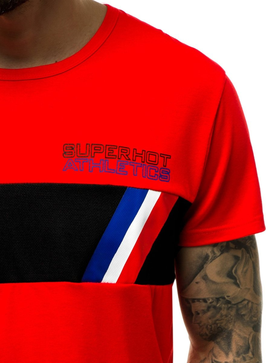 Klasszikus, kerekített U-nyakkivágással rendelkezik. Mellső részén nyomtatás és kontrasztos anyagkombináció található, mi végett látványos kinézete van. Ez a póló pamut és poliészter keverékéből készült. Emiatt jól követi a test vonalát, kellemes tapintású, kényelmes viseletű, valamint ellenálló a sérülésekkel és gyűrődésekkel szemben.