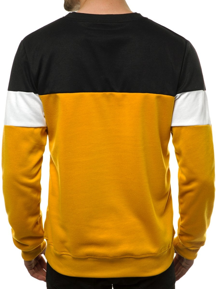 A pulóver fejen át vehető fel. Klasszikus, kerek U nyakkivágással rendelkezik. Az alsó része és ujjvégei összehúzottak, ami sportos karaktert és passzentosságot kölcsönöz ezen ruhadarabnak. A kontrasztos anyagkombinációjának hála impozáns kinézetű. Pamutból és poliészterből készült, emiatt nem nyúlik ki az idő múlásával, puha, kényelmes viseletű, jó tapintású.