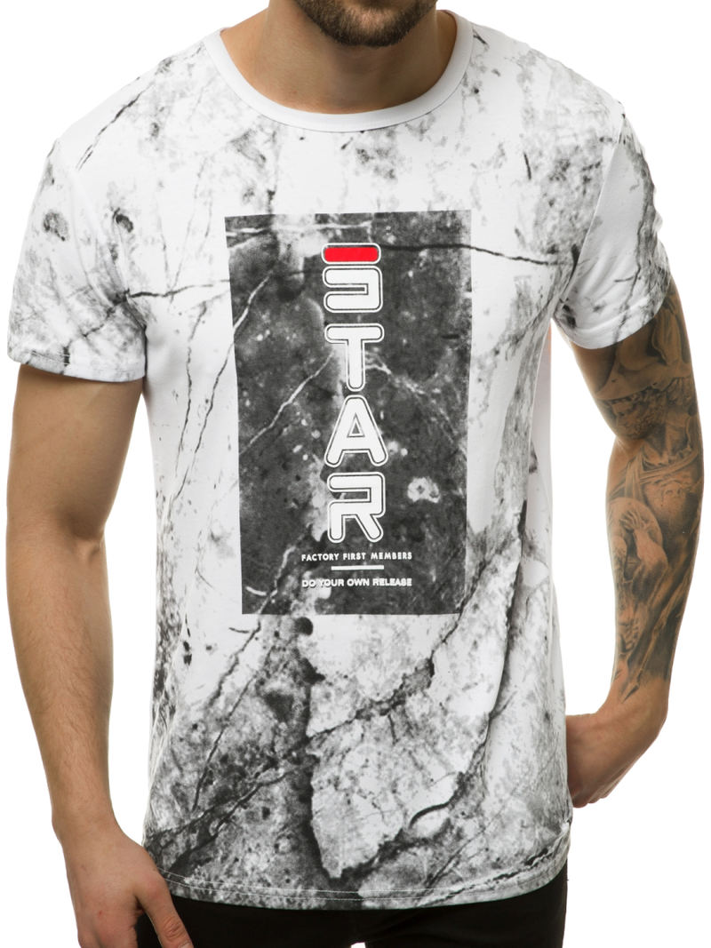 Klasszikus, kerekített U-nyakkivágással rendelkezik. Mellső részén és az ujján a látványos nyomtatás található. Ez a póló pamut és poliészter keverékéből készült. Emiatt jól követi a test vonalát, kellemes tapintású, kényelmes viseletű, valamint ellenálló a gyűrődésekkel szemben és nem nyúlik ki.