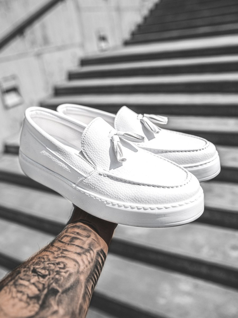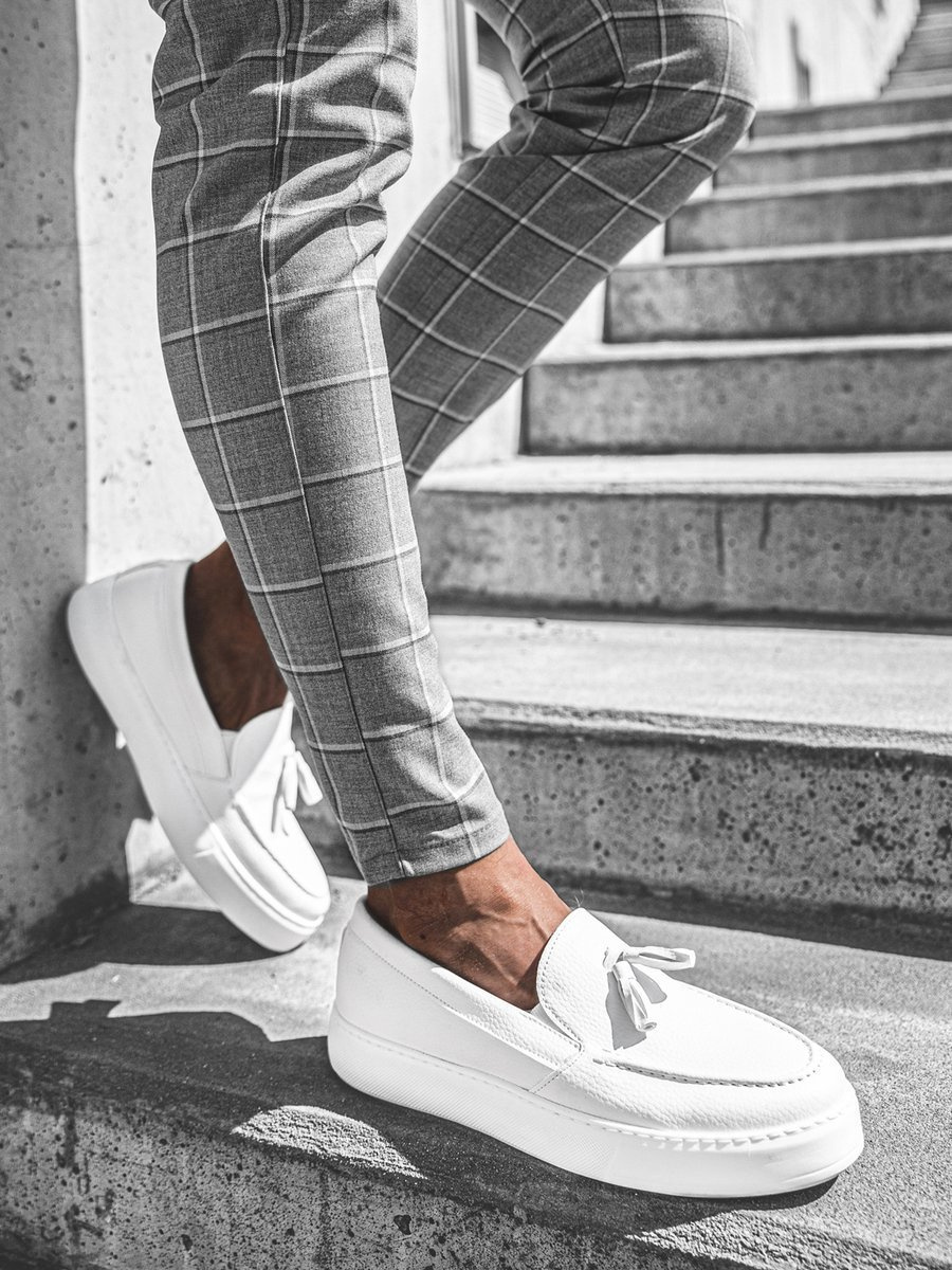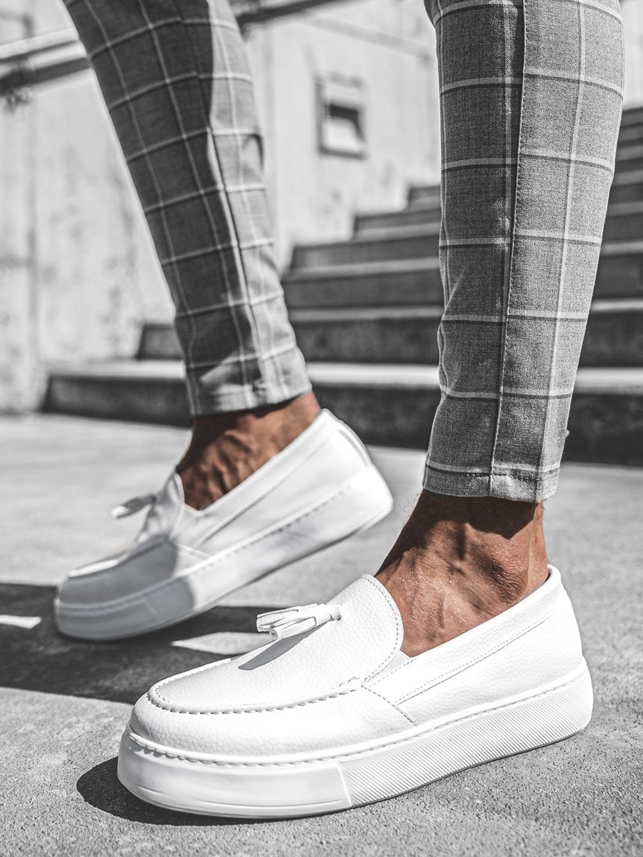 Ezt a cipőfűzőt nélkülöző cipőtípus slip-on típusúnak nevezzük. Kiváló minőségű ökobőrből, valamint műanyagból készült. Ennek a modellnek kerek elülső része van.