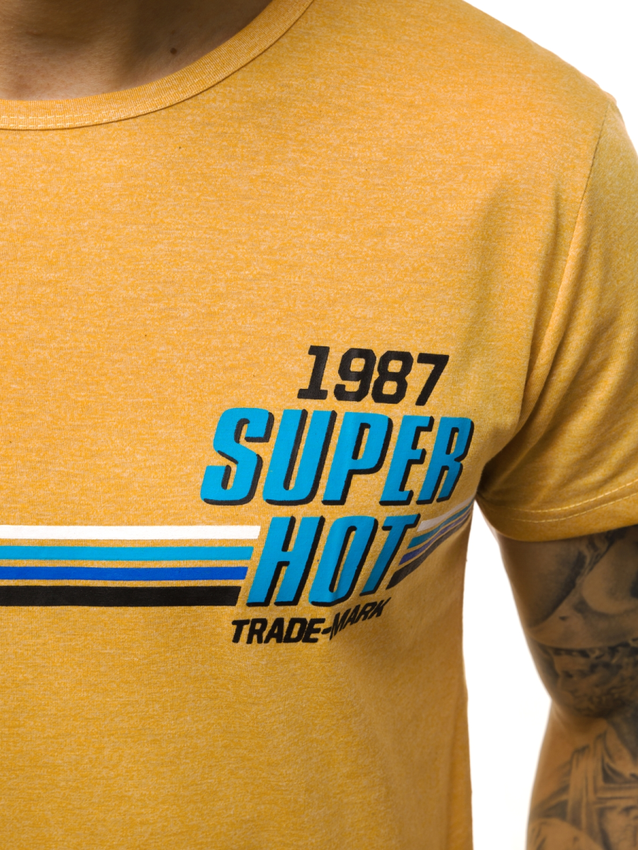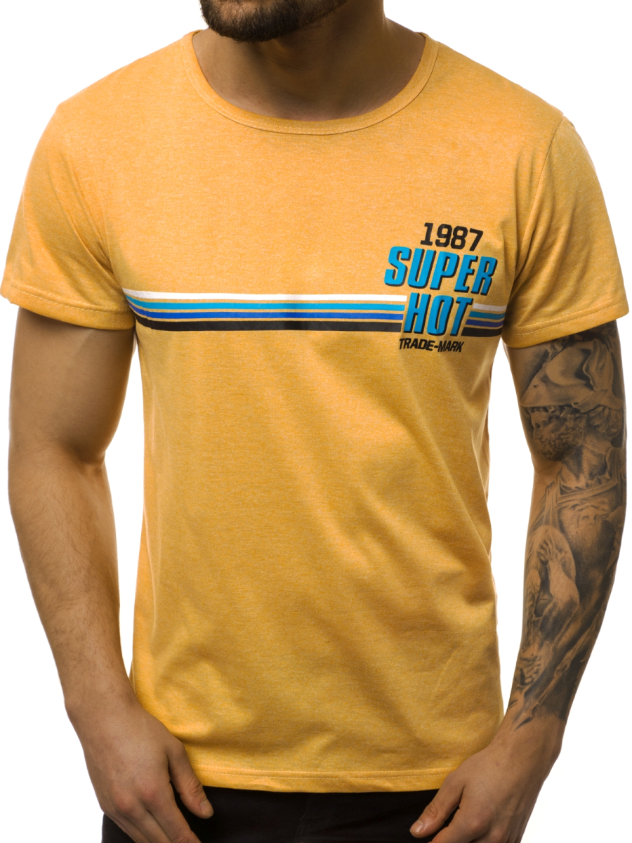 Mellső oldalán és ujján lévő nyomtatással rendelkező férfi póló