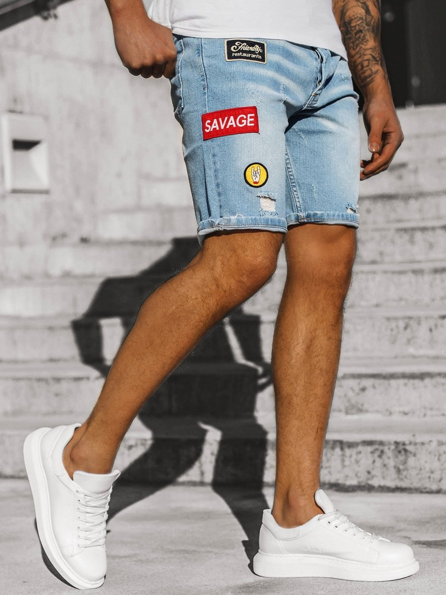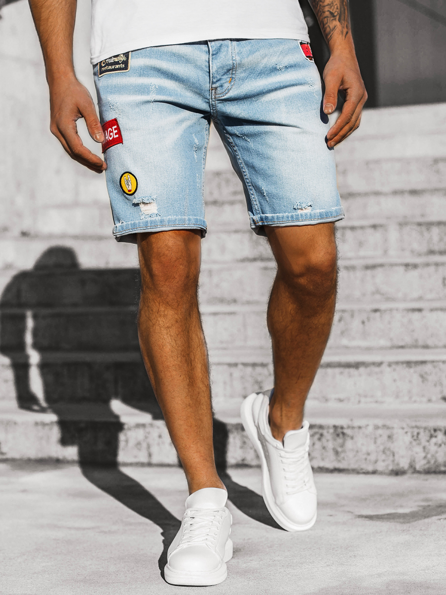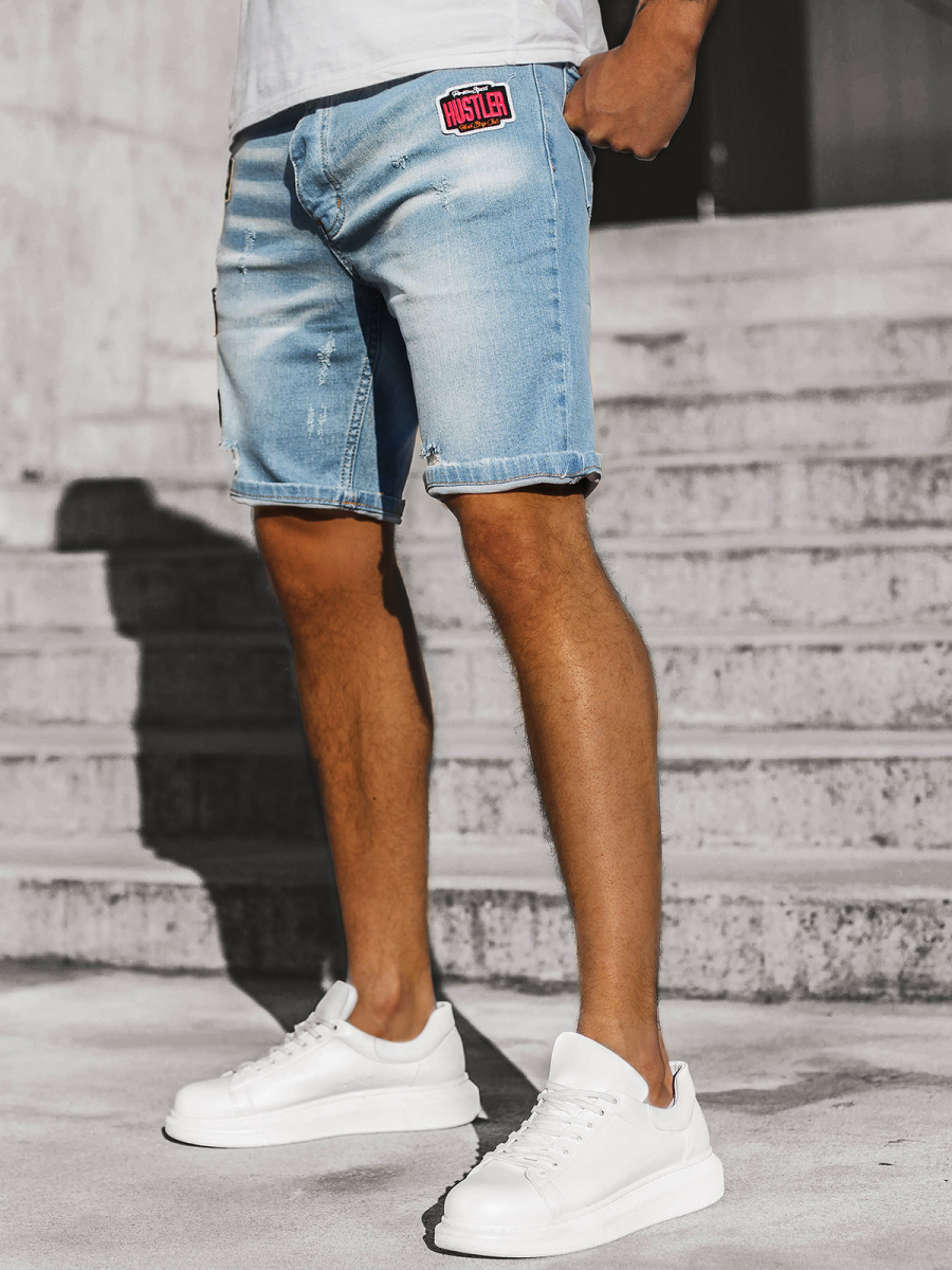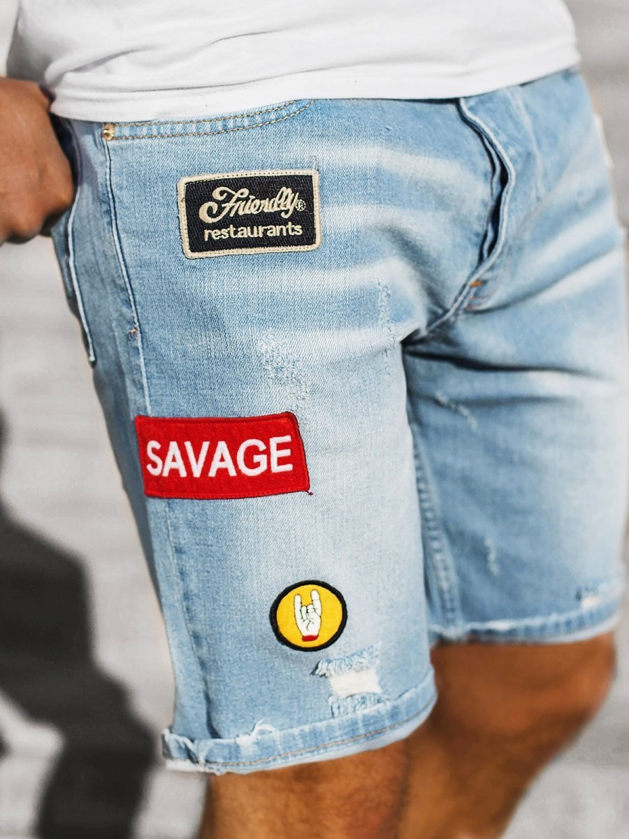Farmer rövidnadrág koptatással és átvarrásokkal