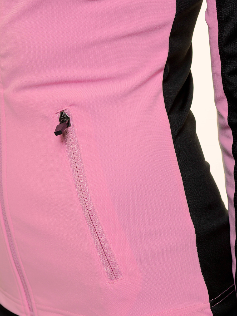 A melegítőfelső a legújabb kollekcióból kerül ki. A termék cipzáros. Az oldalsó részén praktikus, cipzáras zsebeket találunk, ezekbe elrakhatod a számodra fontos kiegészítőket, olyan mint a kulcs, telefon, vagy pénztárca. Az eredeti kinézethez hozzátartozik a kontrasztos anyagösszekapcsolás. A melegítőfelső gyártásához poliésztert és elasztánt használtak fel, ennek köszönhetően szépen illeszkedik a testalkathoz és gyorsan szárad.