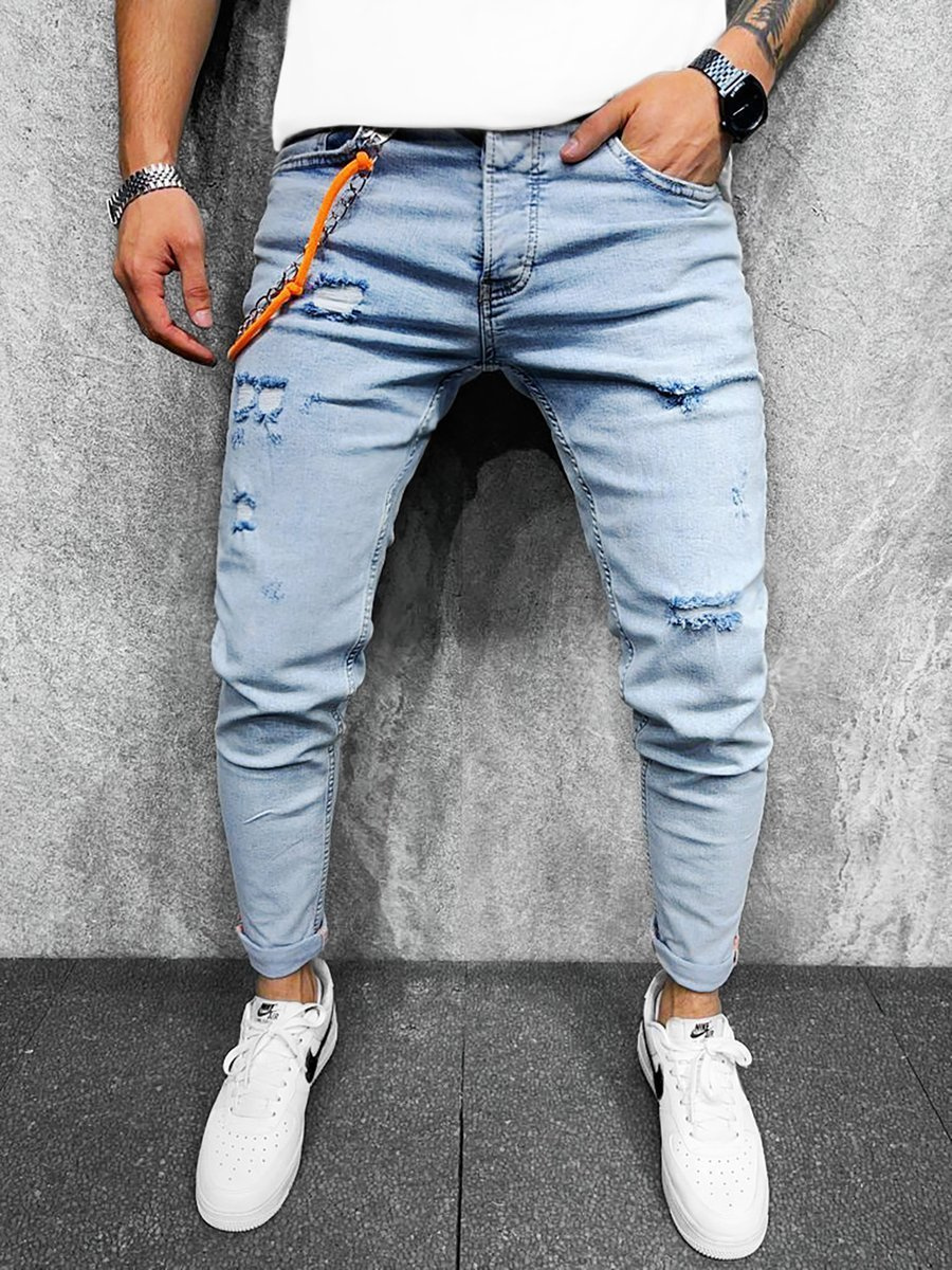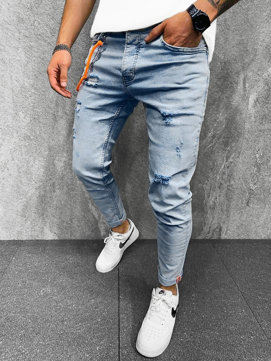 A nadrág cső típusú fazonnal rendelkezik, azaz keskeny lábszárral. Elől és hátul praktikus zsebeket találunk, ezekbe elrakhatod a pénztárcádat, vagy a telefonodat. A kopottas résznek köszönhetően a lábszárnál, továbbá lecsatolható magzatnak és láncnak köszönhetően, a nadrág eredetien néz ki. A gyártásához kiváló minőségű pamutot és elasztánt használtak fel, ennek köszönhetően kényelmes a viselése, tartós és szépen illeszkedik a testalkathoz.
