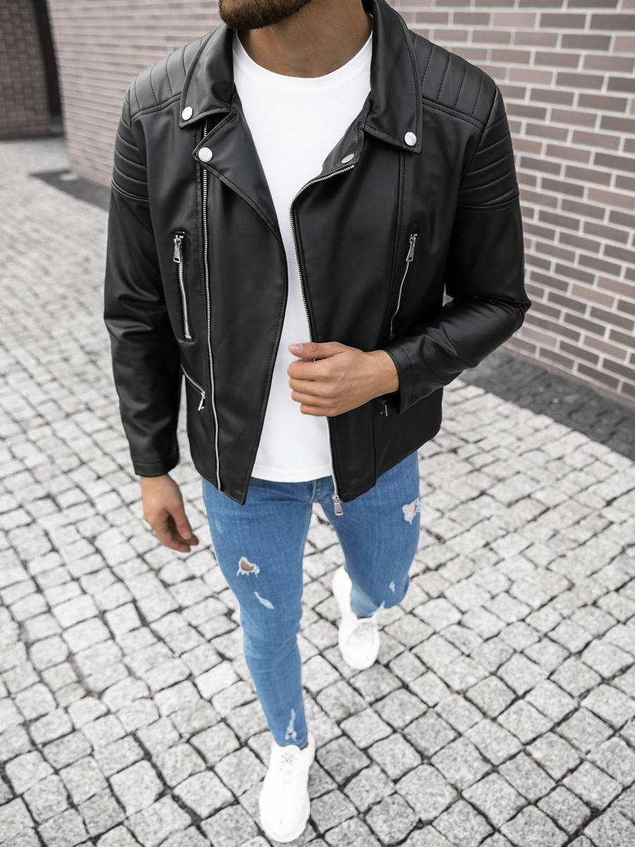 Divatos férfi bőrkabát