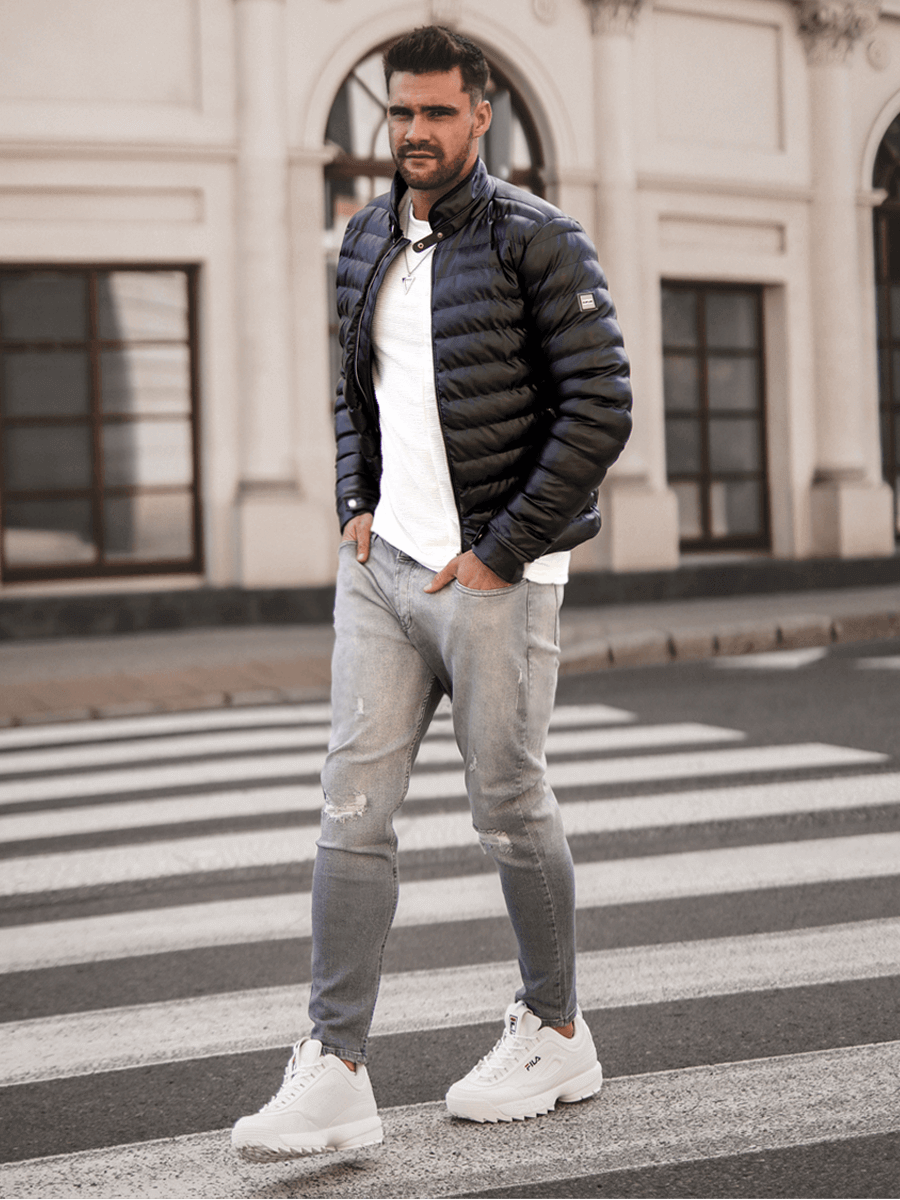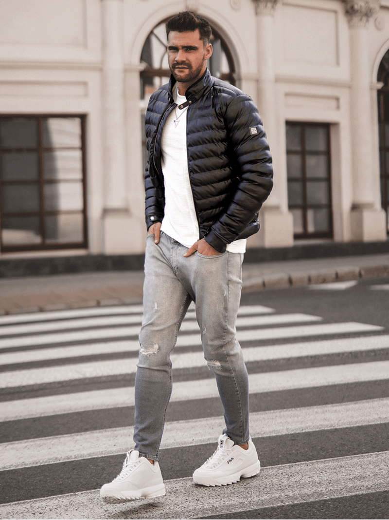 Férfi téli bőrkabát fekete OZONEE O/9025