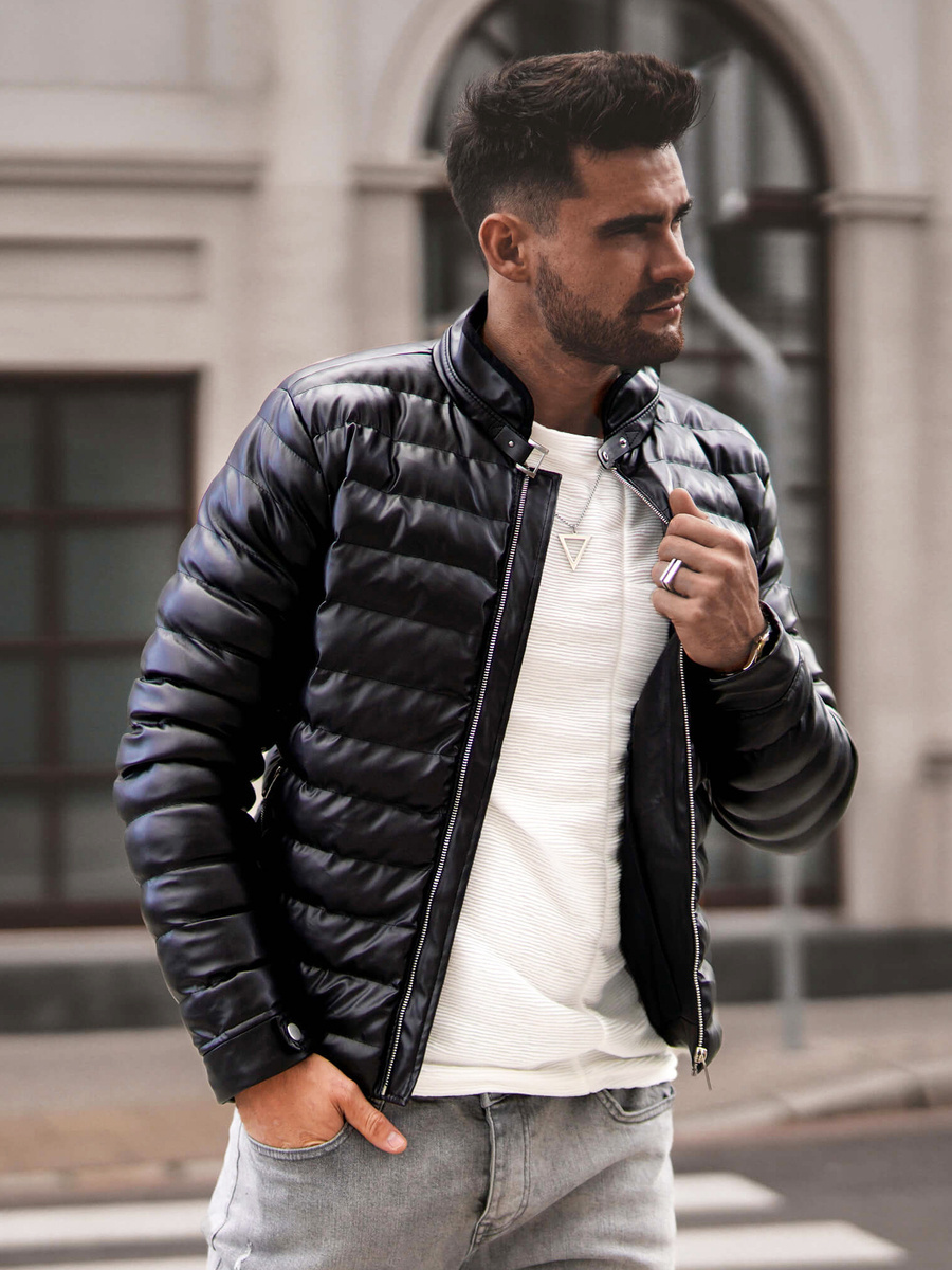 • Férfi téli bőrkabát fekete OZONEE O/9025