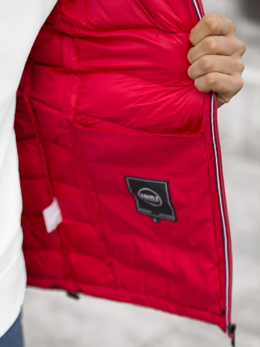 A kabát a legújabb kollekcióból kerül ki. Tűzdelésekkel rendelkezik, ezért eredeti kinézetet biztosít. A kabát kettő darab zsebbel rendelkezik oldalt és egy darab zsebbel a belső részben, ezekbe elrakhatod a számodra fontos kiegészítőket, olyan mint a kulcs, pénztárca, vagy telefon. Az alsó és ujj része pánttal végződik ami az egésznek sportos karaktert biztosít. A kabát gyártásához kiváló minőségű nylont használtak fel, ennek köszönhetően szépen illeszkedik a testalkathoz