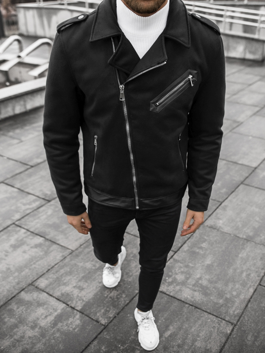 Ez a bőrkabát egy elengedhetetlen kiegészítő, minden férfi ruhatárában, aki szereti a rockos hangulatot. Univerzális, időtálló fazonnal rendelkezik, ami sosem megy ki a divatból. Ezt a kabátot felveheted találkozókra az ismerősökkel, koncertre, vagy randevúra. Nagyon jól fog passzolni más férfi ruházathoz, amiket a kínálatunkban tudsz megvásárolni.