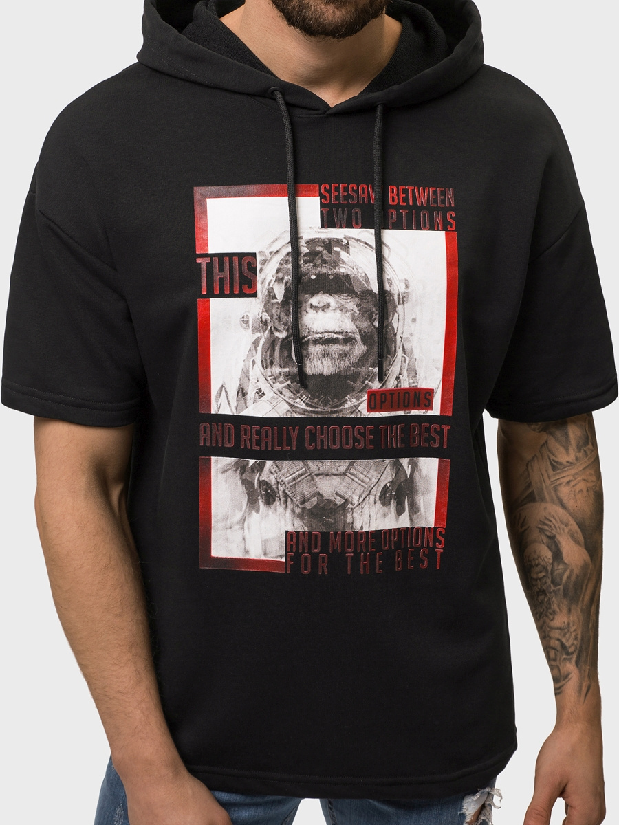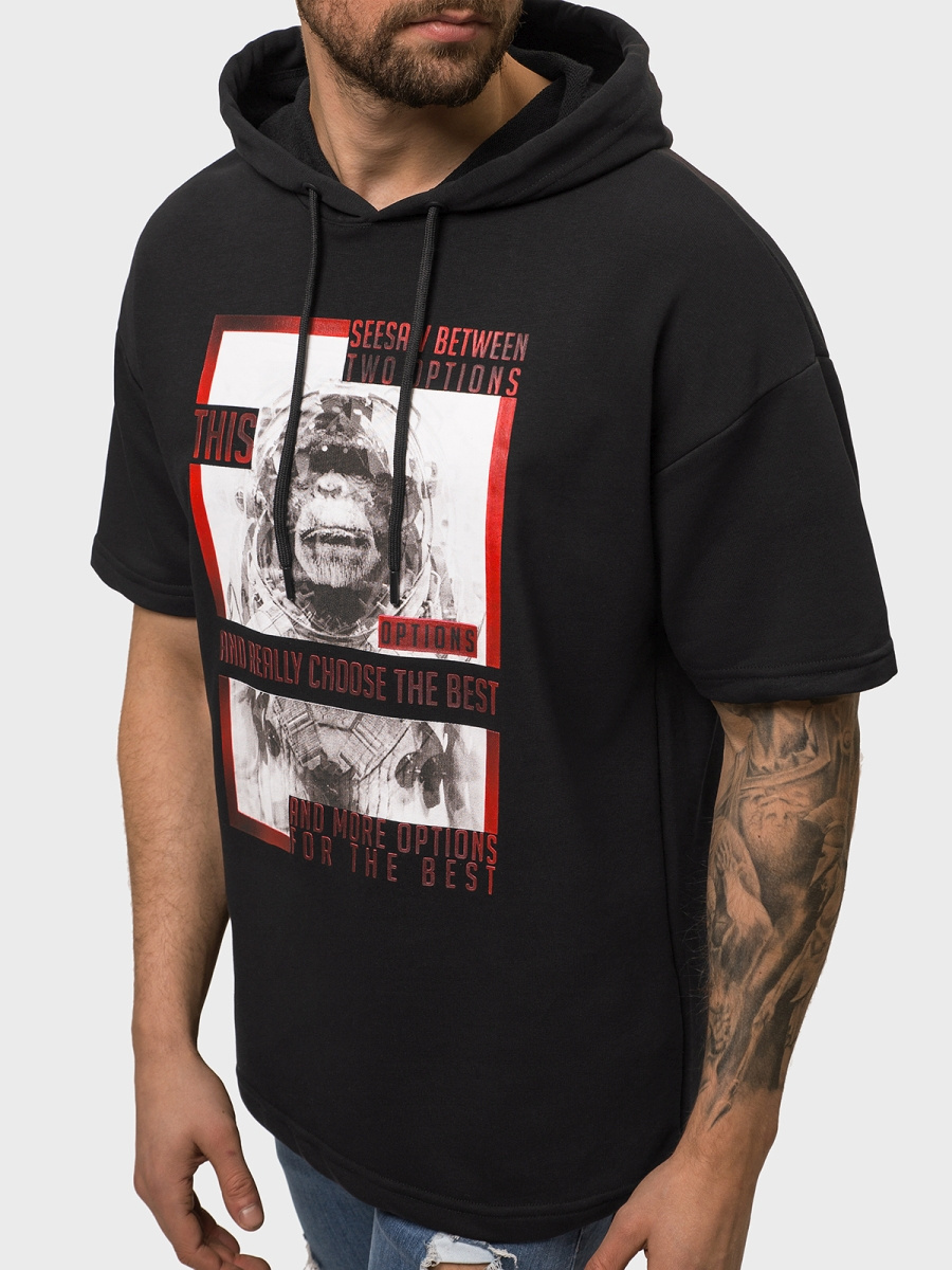A melegítőfelső a legújabb kollekcióból kerül ki. A fejünkön keresztül tudjuk felvenni és rövid ujjal rendelkezik. A felső kapucnis, ezért kiválóan be fog válni a hűvösebb, szelesebb napokon, megvédve minket a hidegtől. Az elülső részén eredeti, figyelemfelkeltő feliratot találunk. A felső gyártásához pamutot és poliésztert használtak fel, ennek köszönhetően szépen illeszkedik a testalkathoz, kényelmes a viselése, és kellemes a tapintása.
