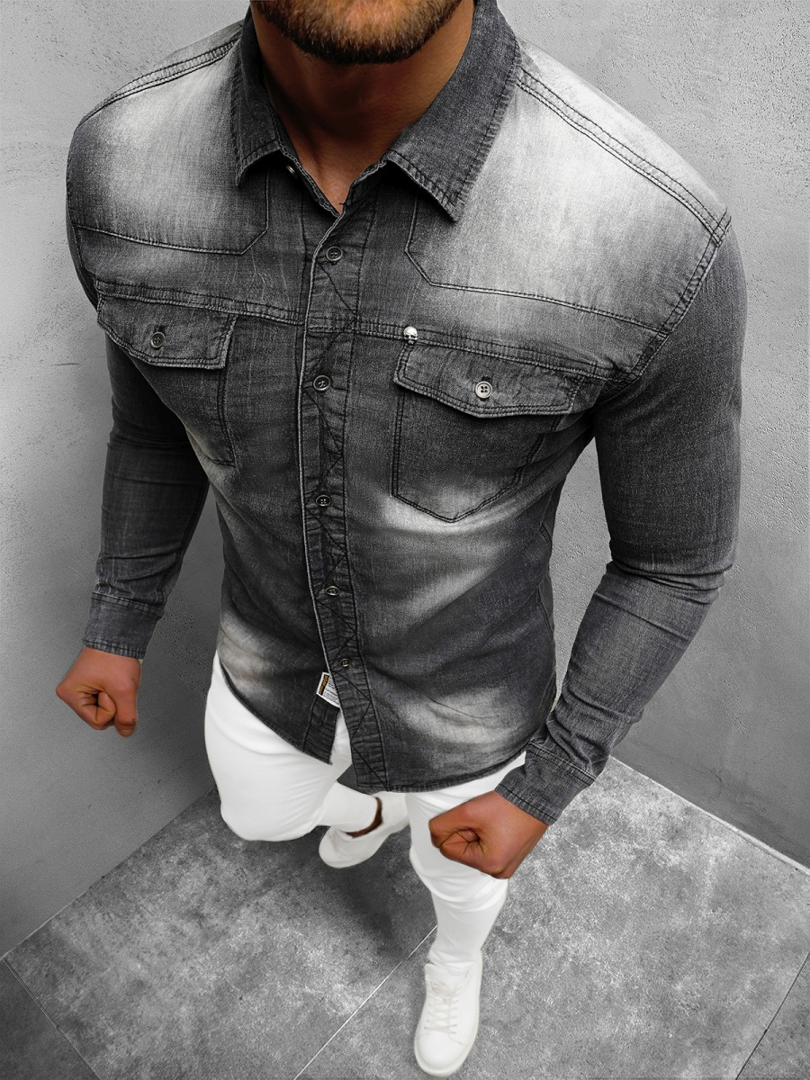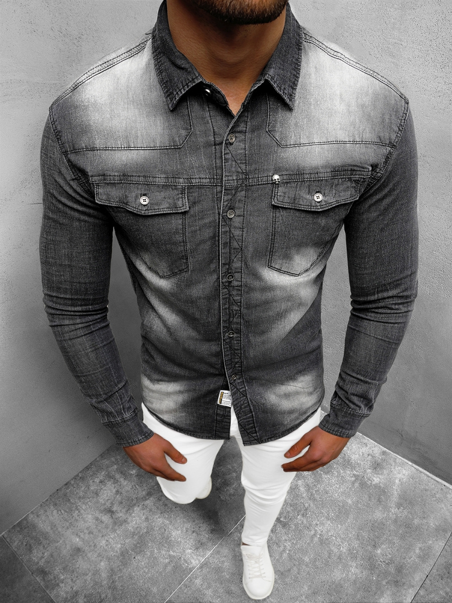 Az ing a legújabb kollekcióból kerül ki. Hosszú ujjal rendelkezik és begombolható. Az elülső részén zsebeket találunk. Az anyag összekapcsolásnak és a díszített, fém koponyának köszönhetően, a termék eredetien néz ki. Az ing gyártásához pamutot, poliésztert és elasztánt használtak fel, ennek köszönhetően kényelmes a viselése és szépen illeszkedik a testalkathoz.