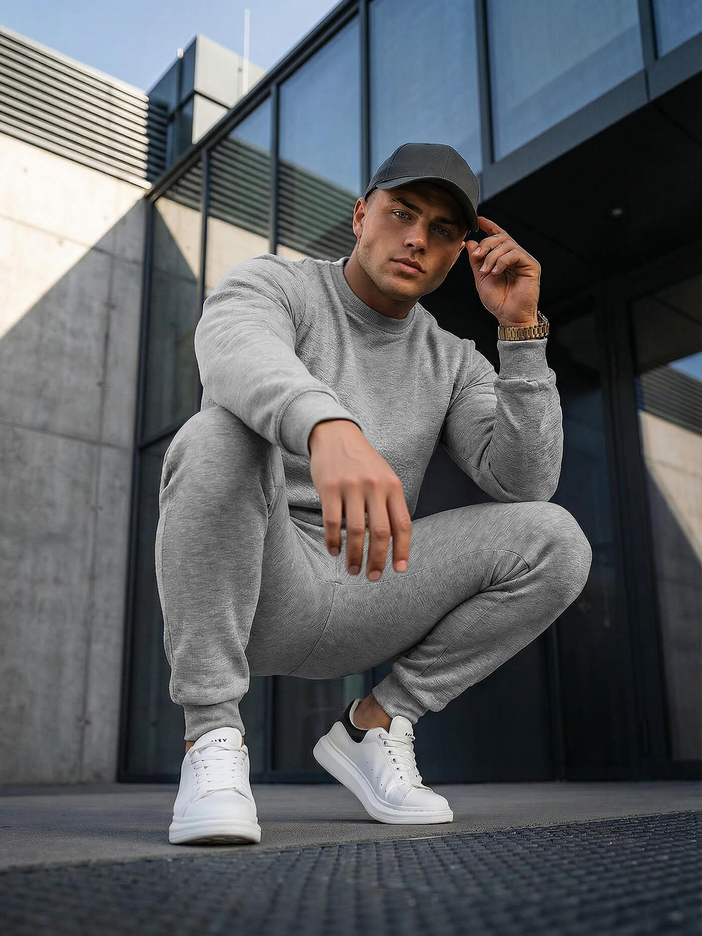 Az összeállítás mindazoknak tetszeni fog, akik szeretik a laza, nem hivatalos stilizációt. Univerzális, klasszikus szabással rendelkezik, ami sosem megy ki a divatból és minden férfi számára ideális lesz, függetlenül a kortól, vagy a testalkat típusától. Ezt a komplettet bátran tudod hordani egész évben - mint a hűvösebb, de a melegebb napokon is.
