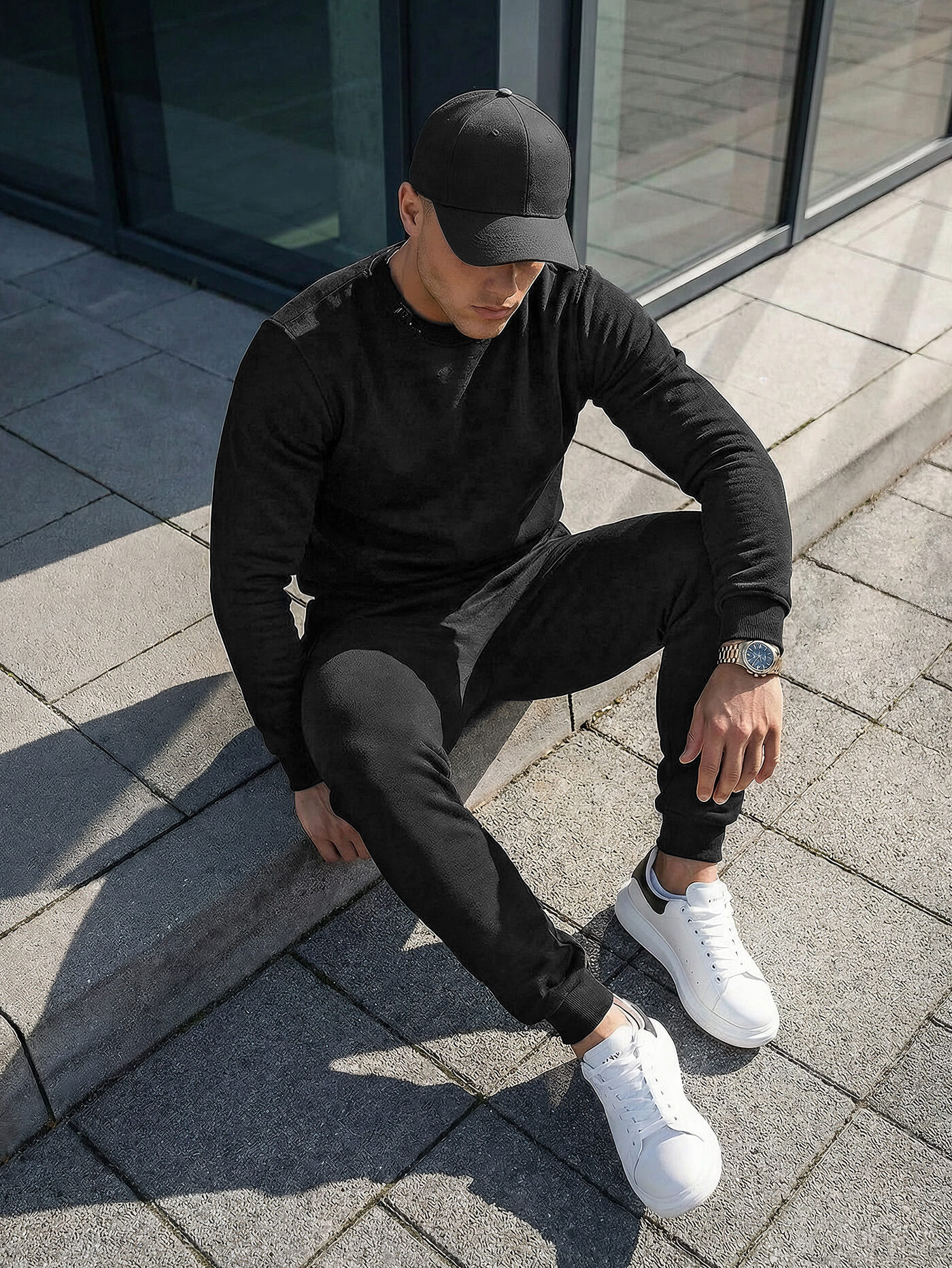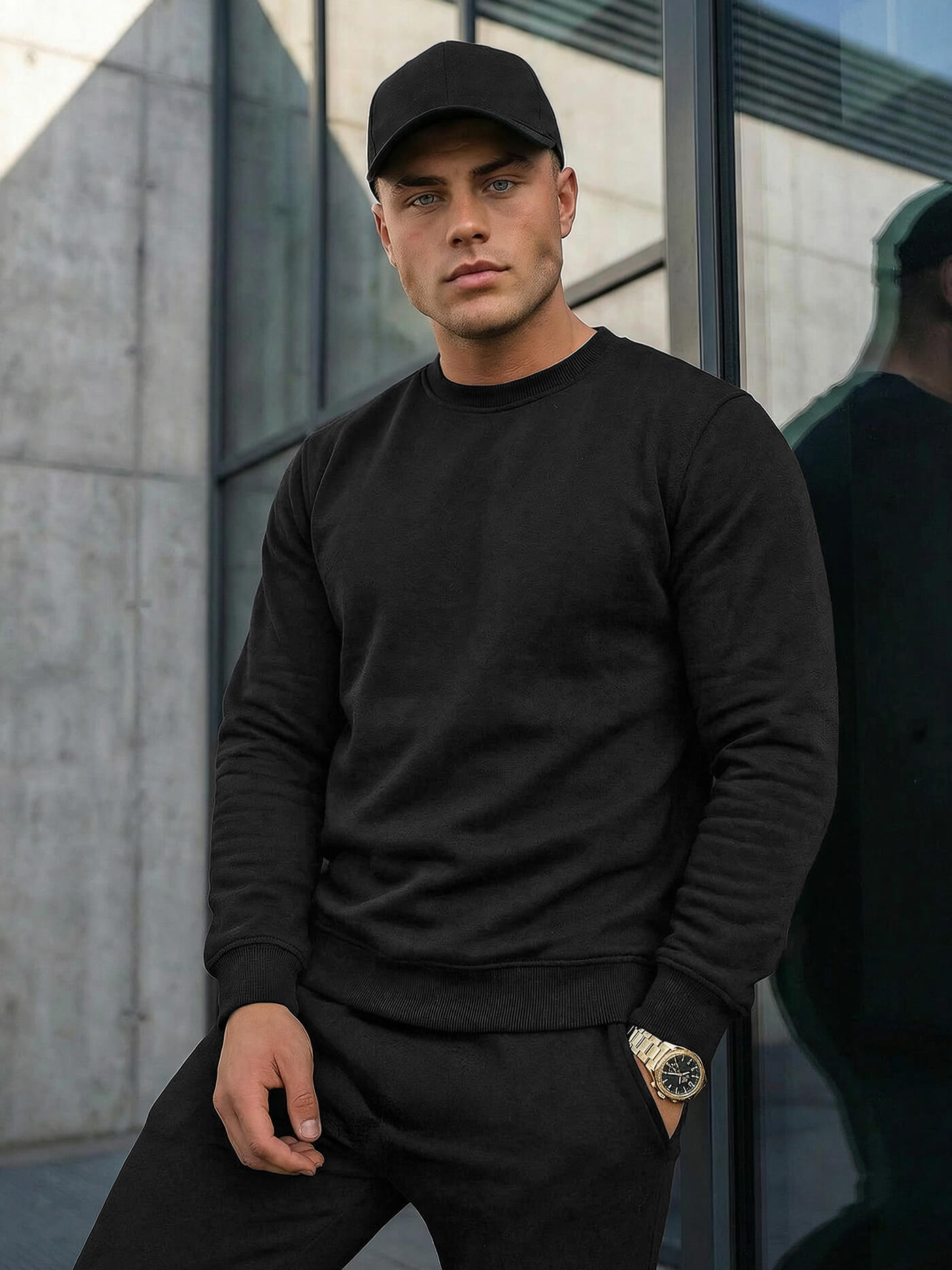 Az összeállítás mindazoknak tetszeni fog, akik szeretik a laza, nem hivatalos stilizációt. Univerzális, klasszikus szabással rendelkezik, ami sosem megy ki a divatból és minden férfi számára ideális lesz, függetlenül a kortól, vagy a testalkat típusától. Ezt a komplettet bátran tudod hordani egész évben - mint a hűvösebb, de a melegebb napokon is.