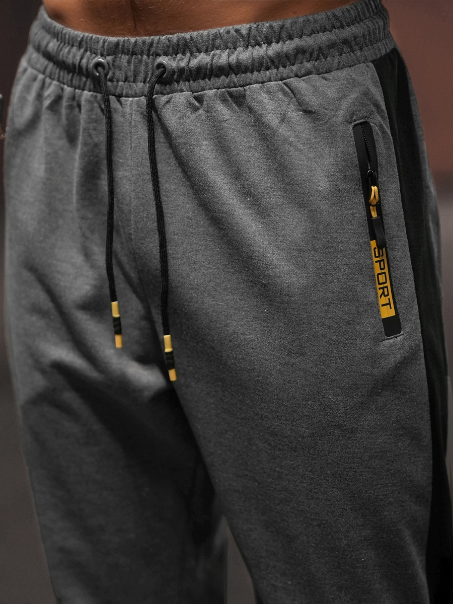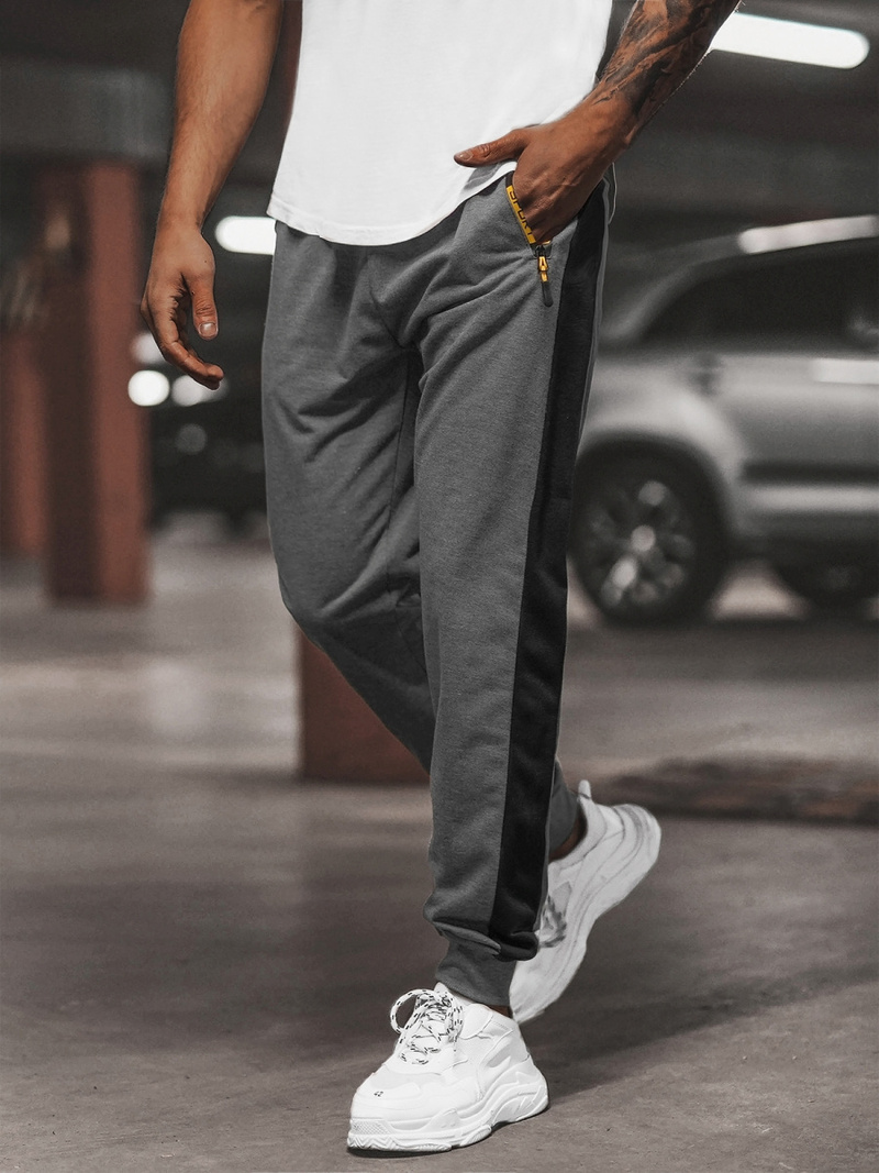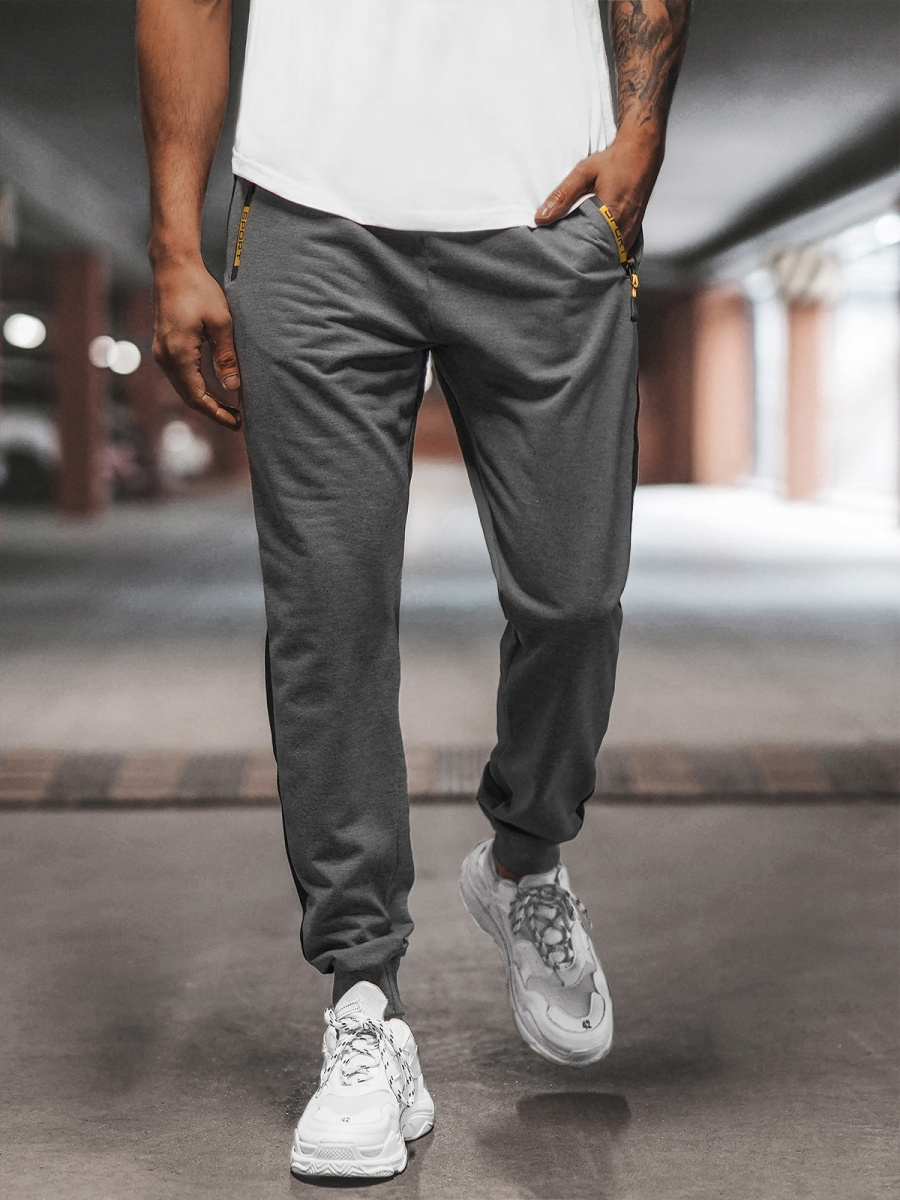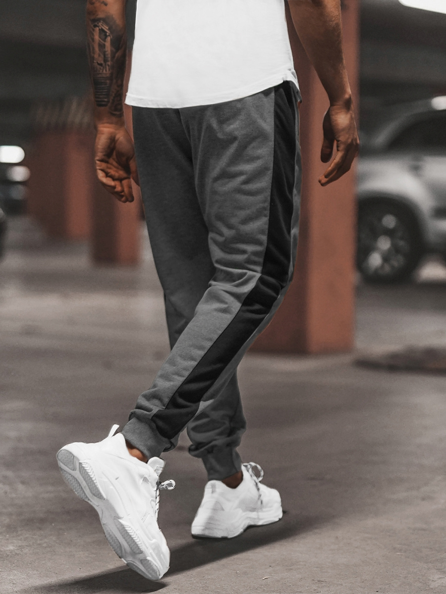 A nadrág a legújabb kollekcióból kerül ki. Jogger típusú fazonnal rendelkezik. A derék és a lábszár pánttal rendelkezik, ami eredeti kinézetet biztosít. Az oldalsó részén praktikus zsebeket találunk, amik cipzárosak, ezekbe elrakhatod a kulcsodat, pénztárcádat, vagy telefonodat. A kontrasztos csíkozásnak köszönhetően az oldalsó részen, a joggerek eredetien néznek ki. A gyártásához kiváló minőségű pamutot és poliésztert használtak fel, ennek köszönhetően kényelmes a viselése és kellemes a tapintása.