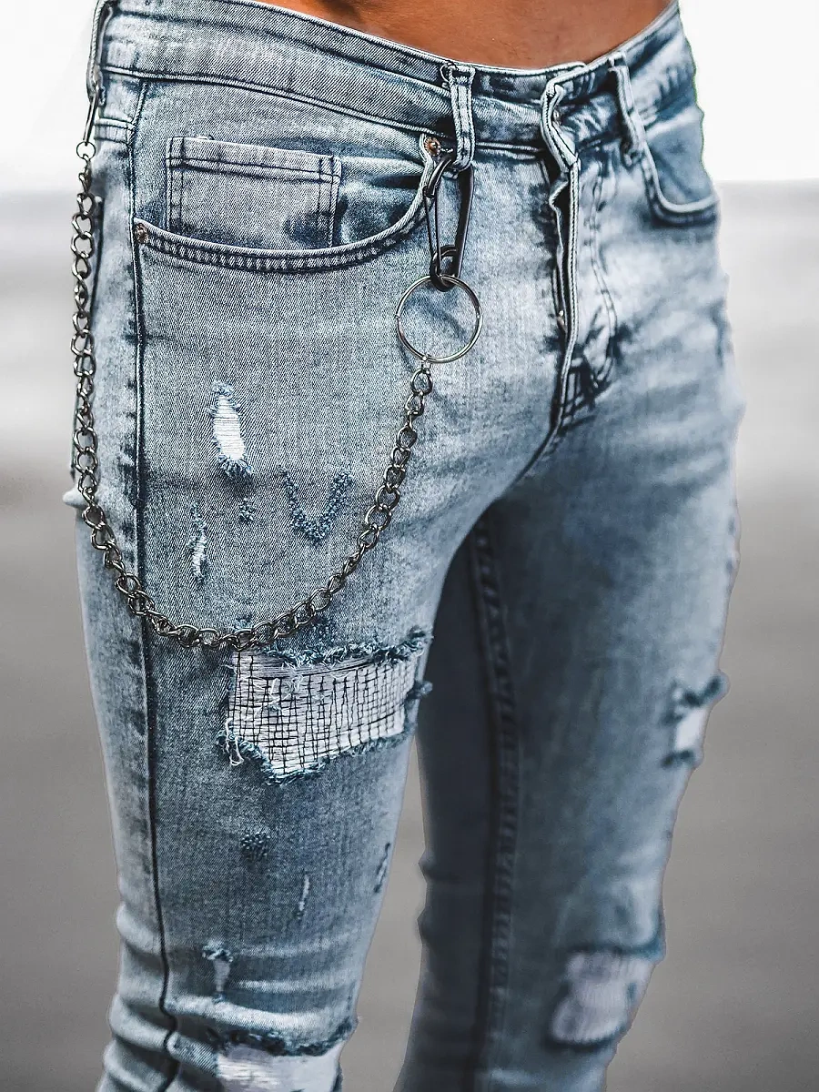 Lánccal rendelkező férfi farmernadrág