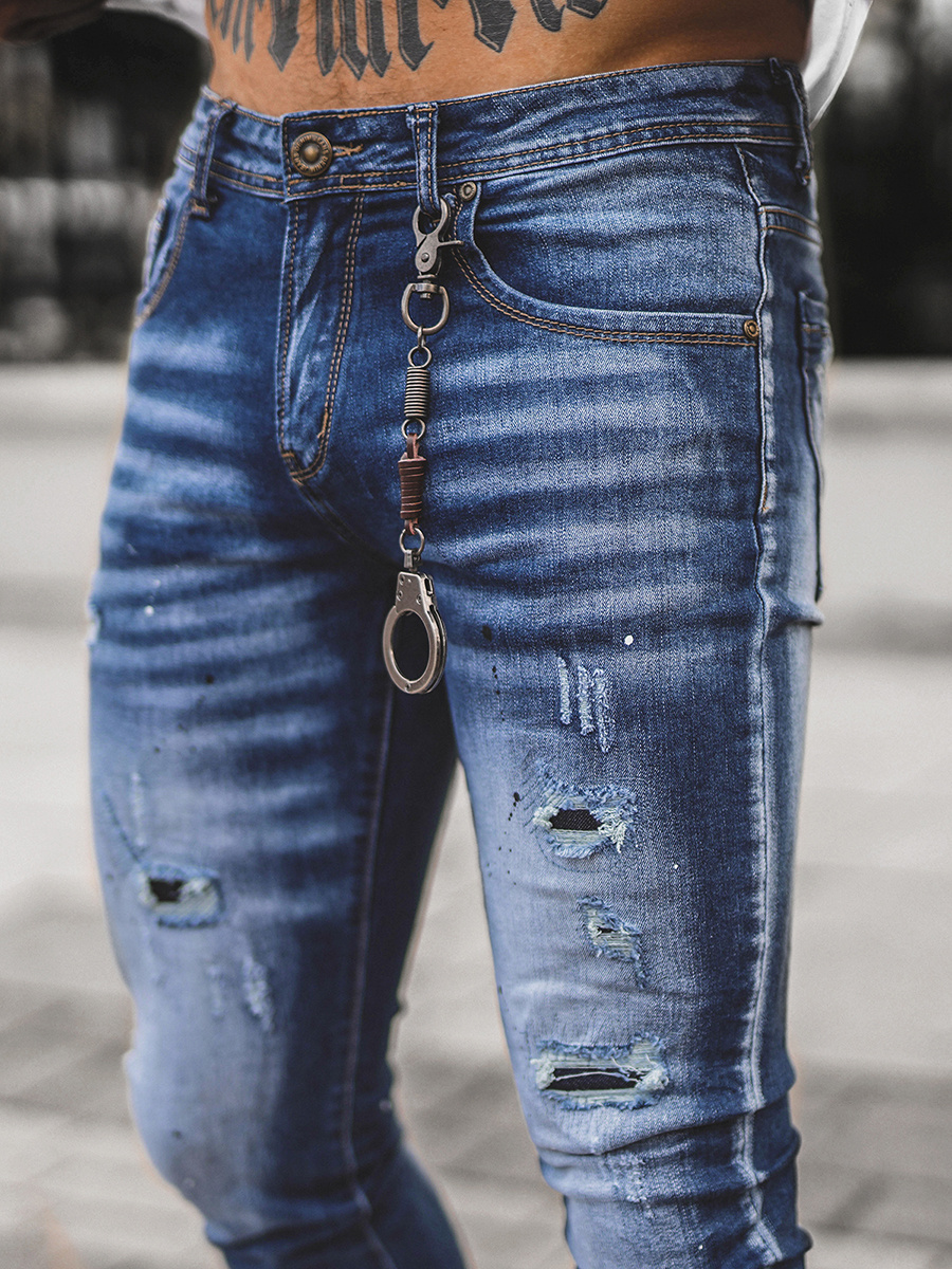 A csőnadrág az egyik legdivatosabb fazonú férfi nadrág. Az általunk javasolt model, a kopottas résznek köszönhetően a lábszárnál és a medálnak, kiválóan néz ki, egyben figyelemfelkeltő is. Ennek a farmernadrágnak a segítségével több tucat érdekes stilizációt hozhatsz létre, különböző alkalmakra.