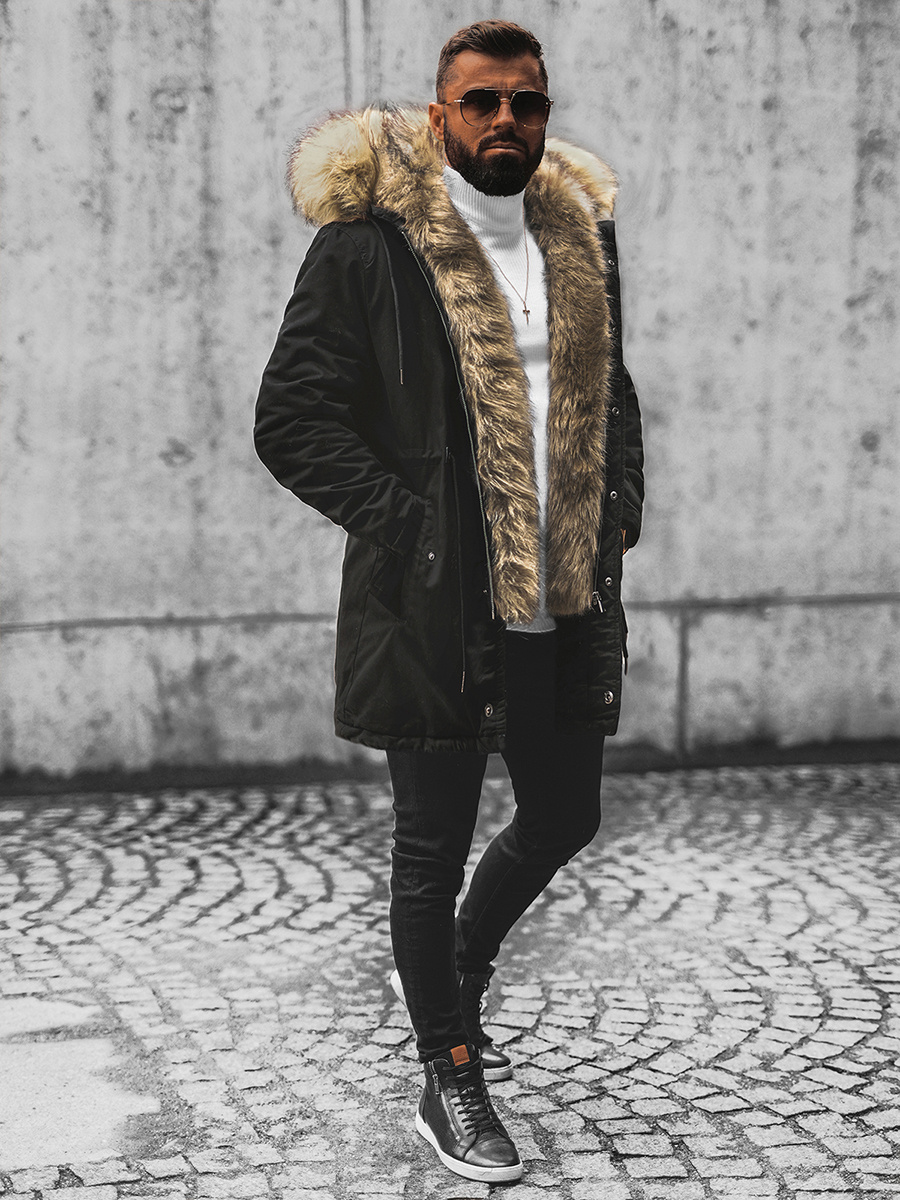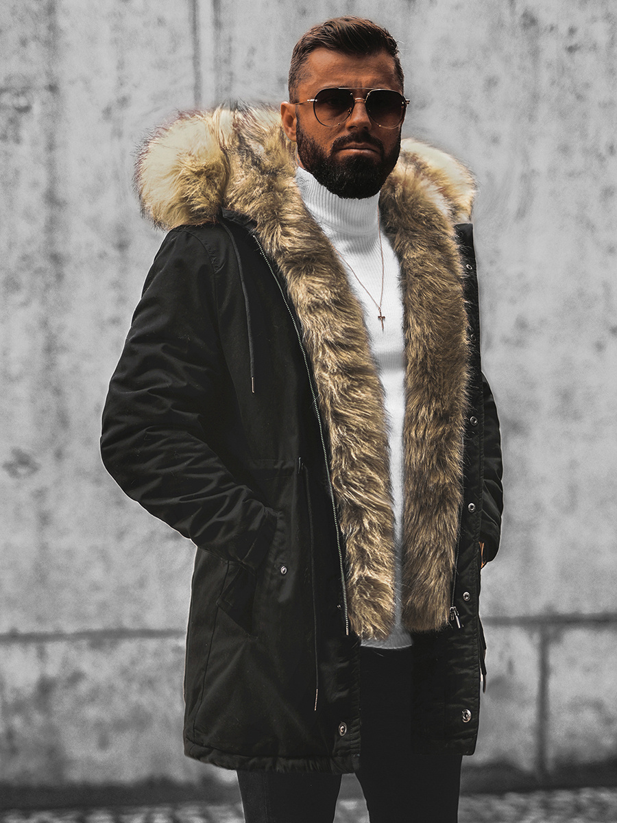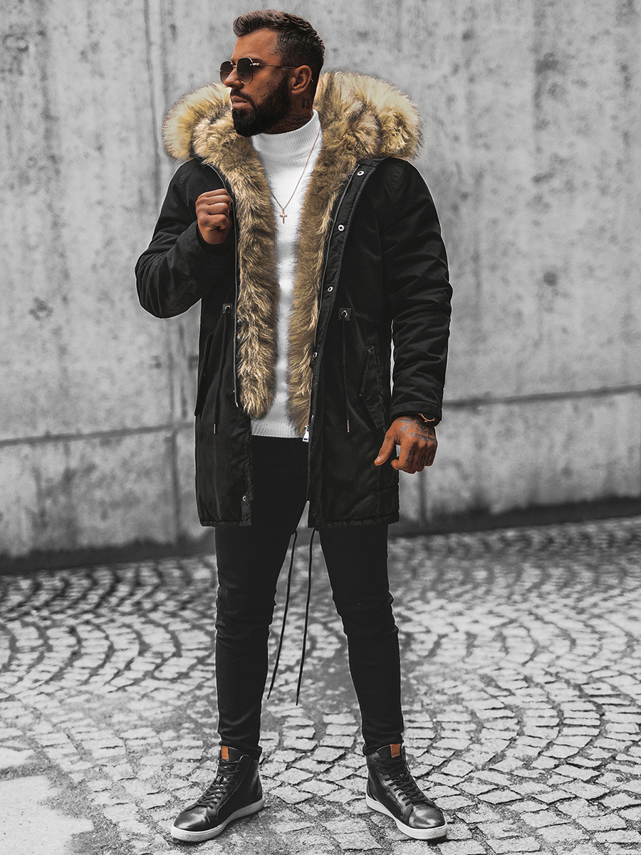 Férfi parka kabát lecsatolható szőrmével
