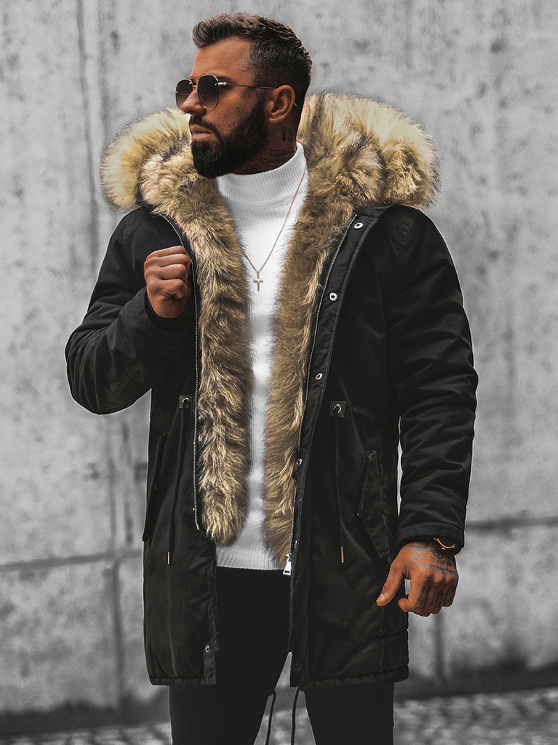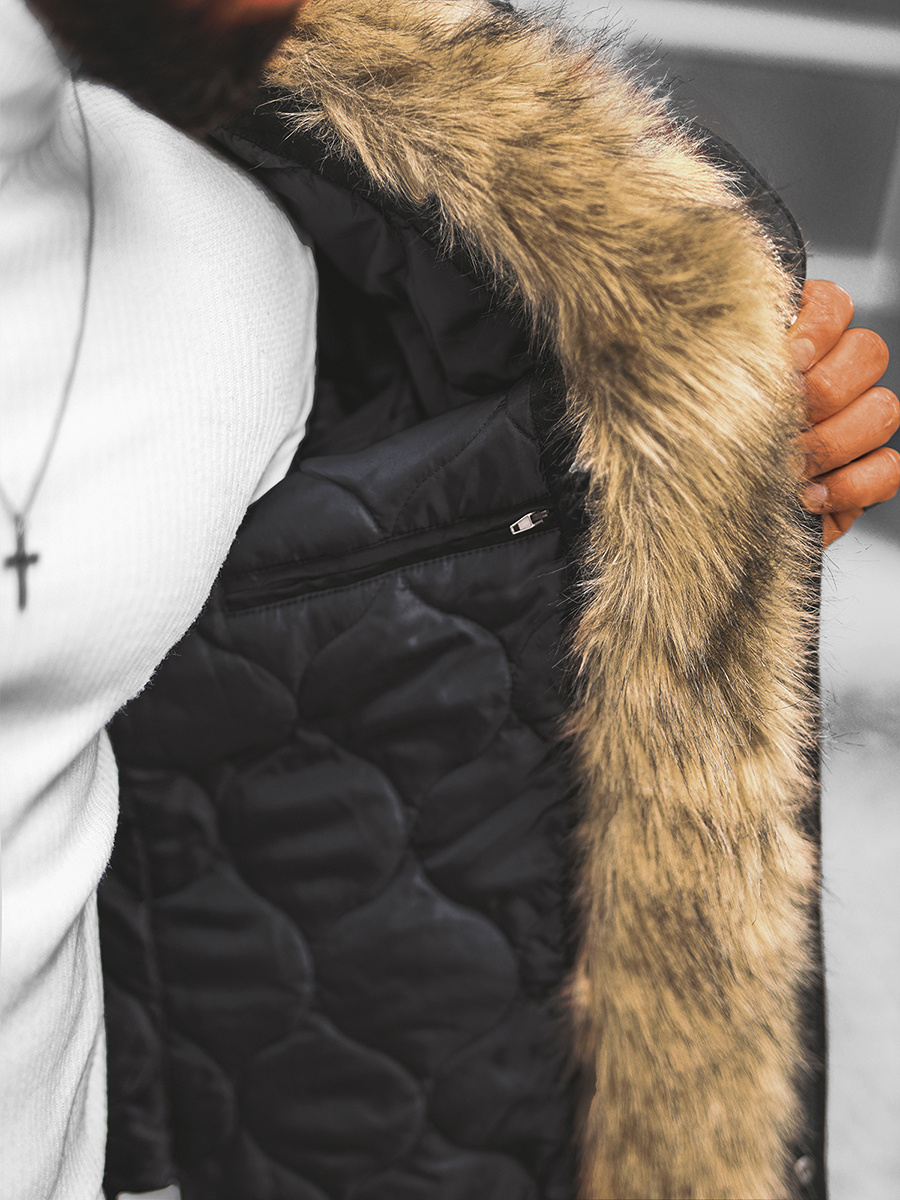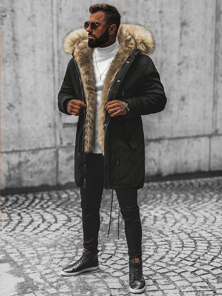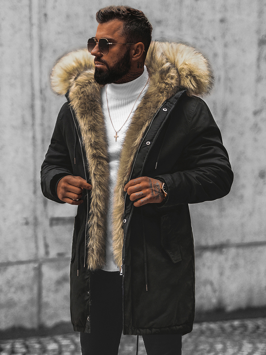 Férfi parka kabát lecsatolható szőrmével