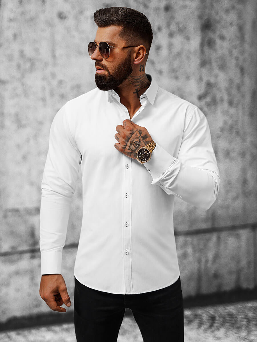 Minden férfi ruhatárában, megtalálhatók kell, hogy legyen legalább egy, hagyományos fehér ing. Ez egy univerzális, időtálló ruhadarab, ami sosem megy ki a divatból és minden férfi számára ideális lesz, függetlenül a testalkat típusától, vagy a kortól. A fehér ing különböző alkalomra megfelelő lehet. Felveheted családi összejövetelekre, esküvőre, bankettre, randevúra, színházba, operába, vagy állásinterjúra. Nagyon jól fog passzolni öltönyhöz, öltöny nadrágokhoz, amiket a kínálatunkból tudsz megvásárolni.