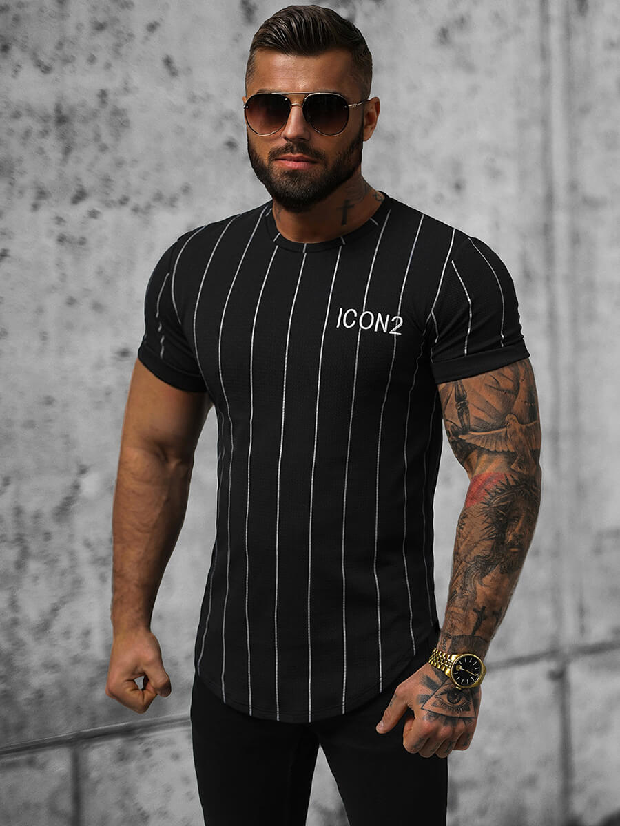 A póló a legújabb kollekcióbol kerül ki. Klasszikus, kerek, U-neck típusú dekoltázzsal rendelkezik. Elől és hátul a pólónak feliratot találunk, függőleges csíkozás formájában. Ráadásul az elülső részen, egy kis feliratot találunk. A póló gyártásához kiváló minőségű poliésztert használtak fel, elasztán hozzáadásával, ennek köszönhetően szépen illeszkedik a testalkathoz, nem gyűrődik, nehezen koszolódik és gyorsan szárad.