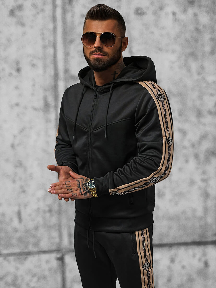 A szett, a legújabb kollekcióból kerül ki. Tartalmazza a pulóvert cipzárral, kapucnival és nadrágot. Mind a kettő rész pántokkal rendelkezik, ami kontrasztos csíkozással végződik, díszített cirkóniával. A szett gyártásához poliésztert és elasztánt használtak fel. Ennek köszönhetően szépen illeszkedik a testalkathoz, nem akadályoz a mozgásban, nem gyűrődik és gyorsan szárad.
