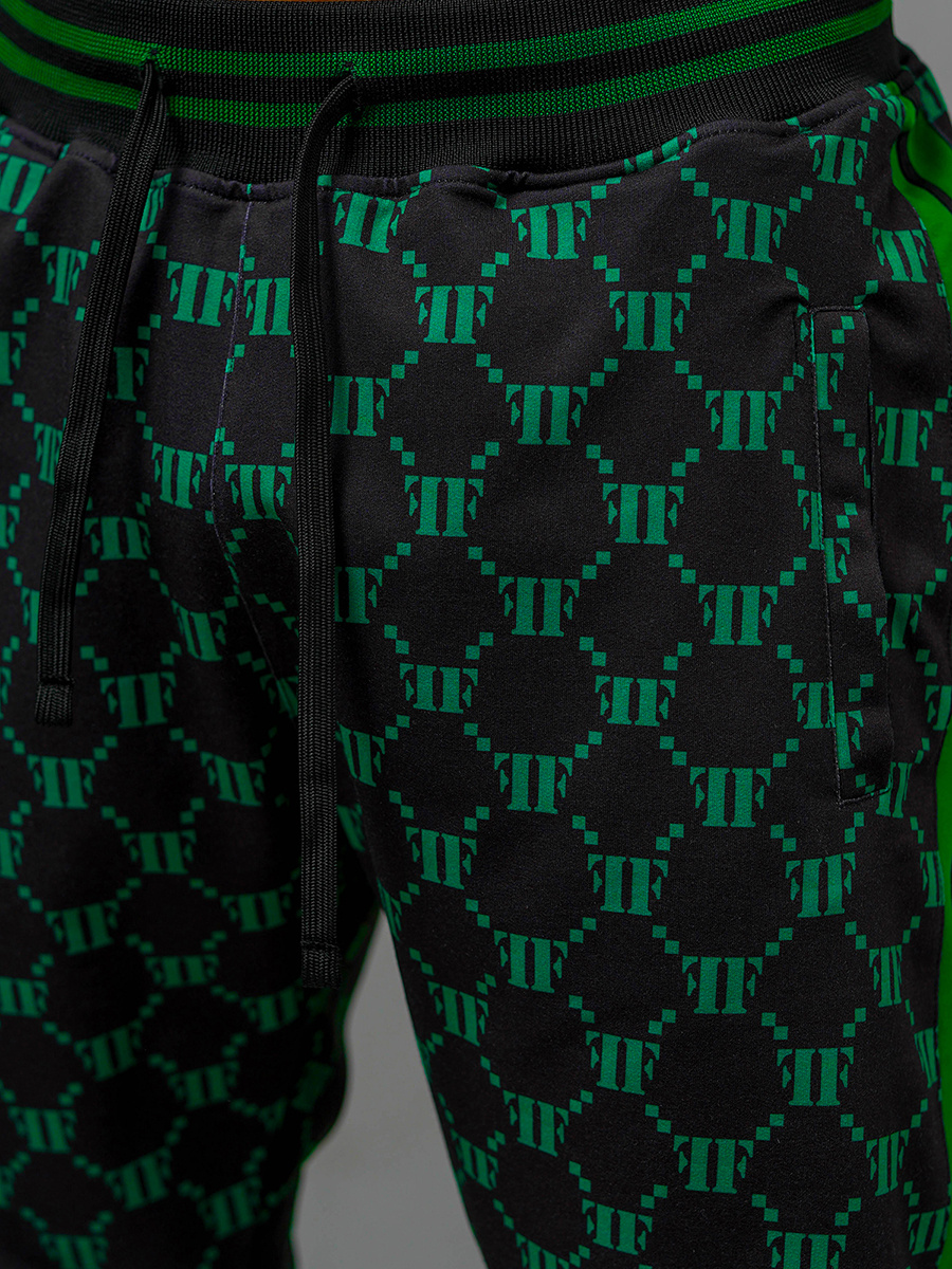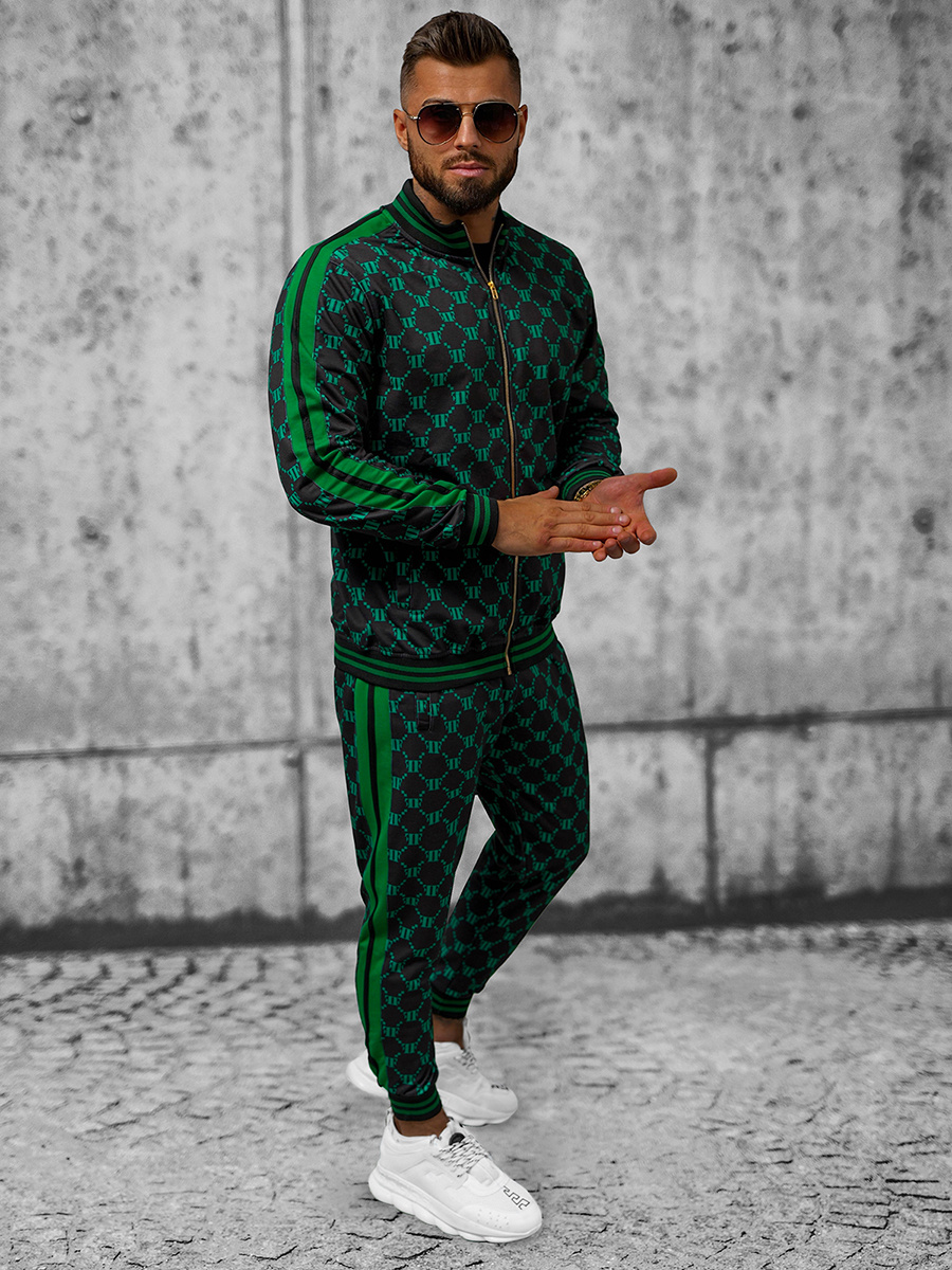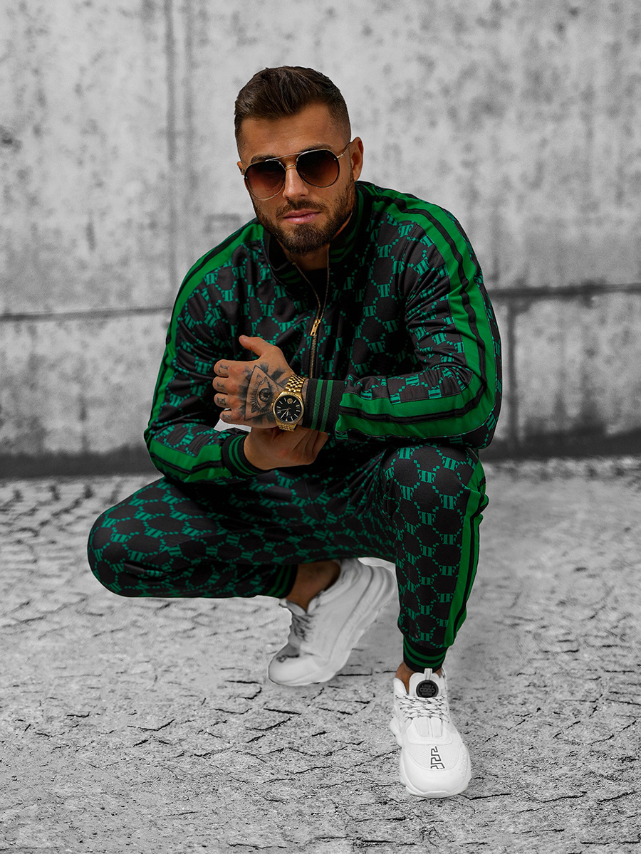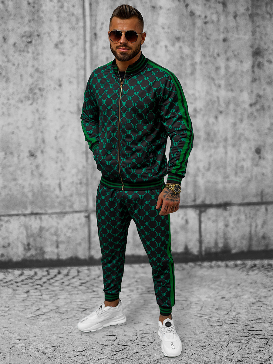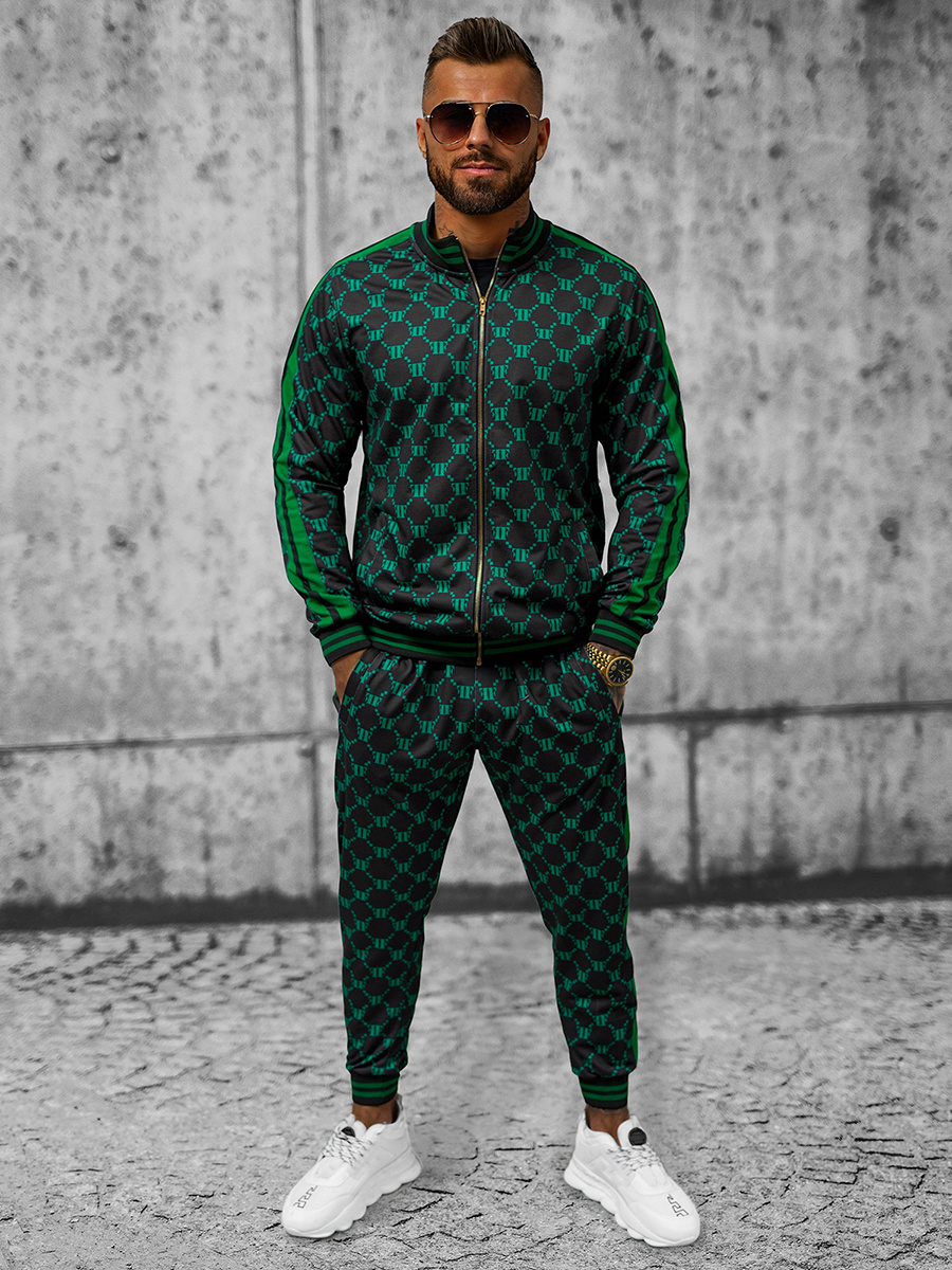 A férfi komplett, kettő darab részt tartalmaz. Az egyik a cipzáros melegítőfelső, pántokkal az ujj, illetve lenti részénél, továbbá oldalsó zsebekkel. A második a nadrág pántokkal és oldalsó zsebekkel. A komplett divatos, eredeti mintázattal rendelkezik. Az egész gyártásához pamutot, poliésztert és elasztánt használtak fel. Ennek köszönhetően, ez a szett nagyon szépen illeszkedik a testalkathoz, nem akadályoz a mozgásban, kényelmes a viselése, kellemes a tapintása, nem gyűrődik és gyorsan szárad.