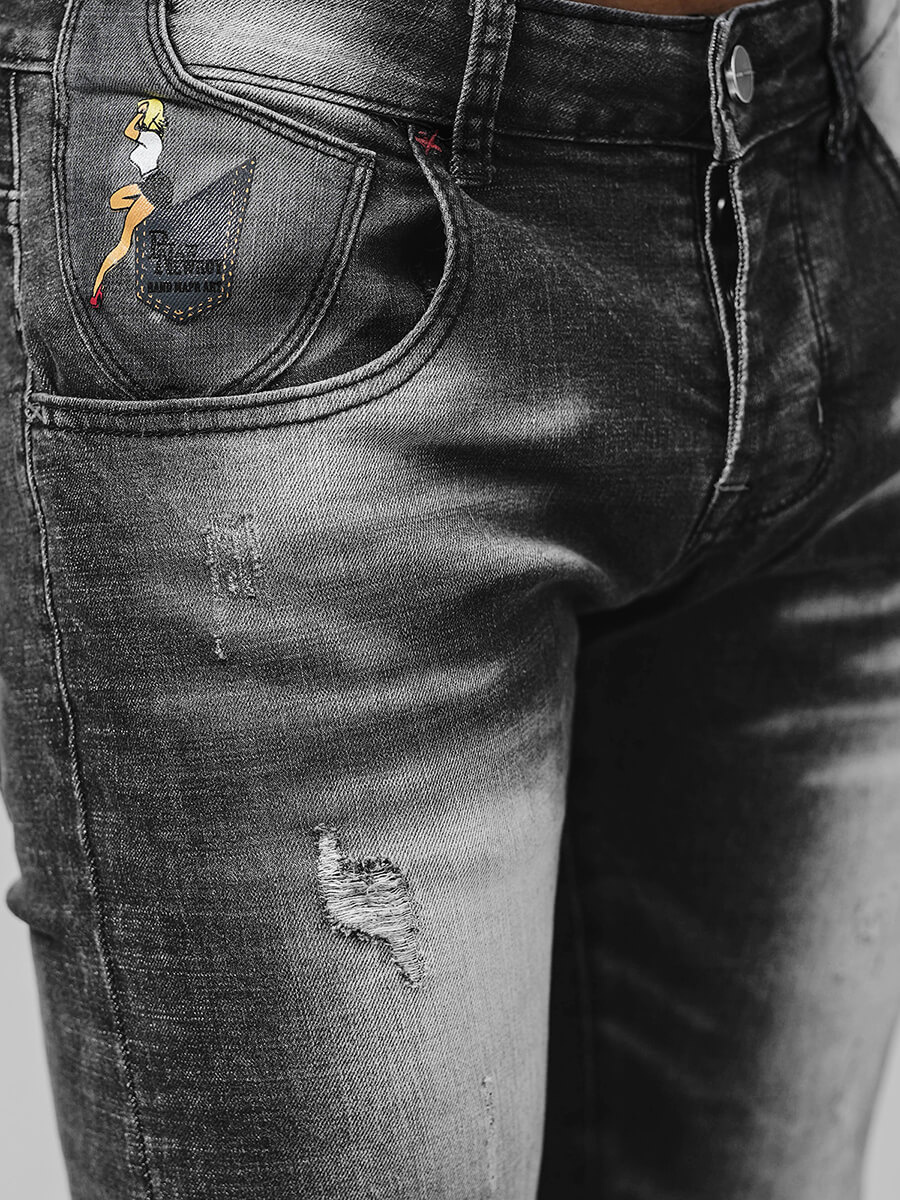 A nadrág slim fit típusú fazonnal rendelkezik, azaz szűk lábszárral. Az eredeti kinézethez hozzátartozik a párolt mintázat, kopottas, továbbá díszített grafika. A nadrág oldalsó és hátsó részén zsebeket találunk, ahová elrakhatod a különböző apró tárgyakat, ilyen a kulcs, pénztárca, vagy telefon. A nadrág gyártásához pamutot, poliésztert, továbbá elasztánt használtak fel, ennek köszönhetően szépen illeszkedik a testalkathoz és kényelmesebb viselése.