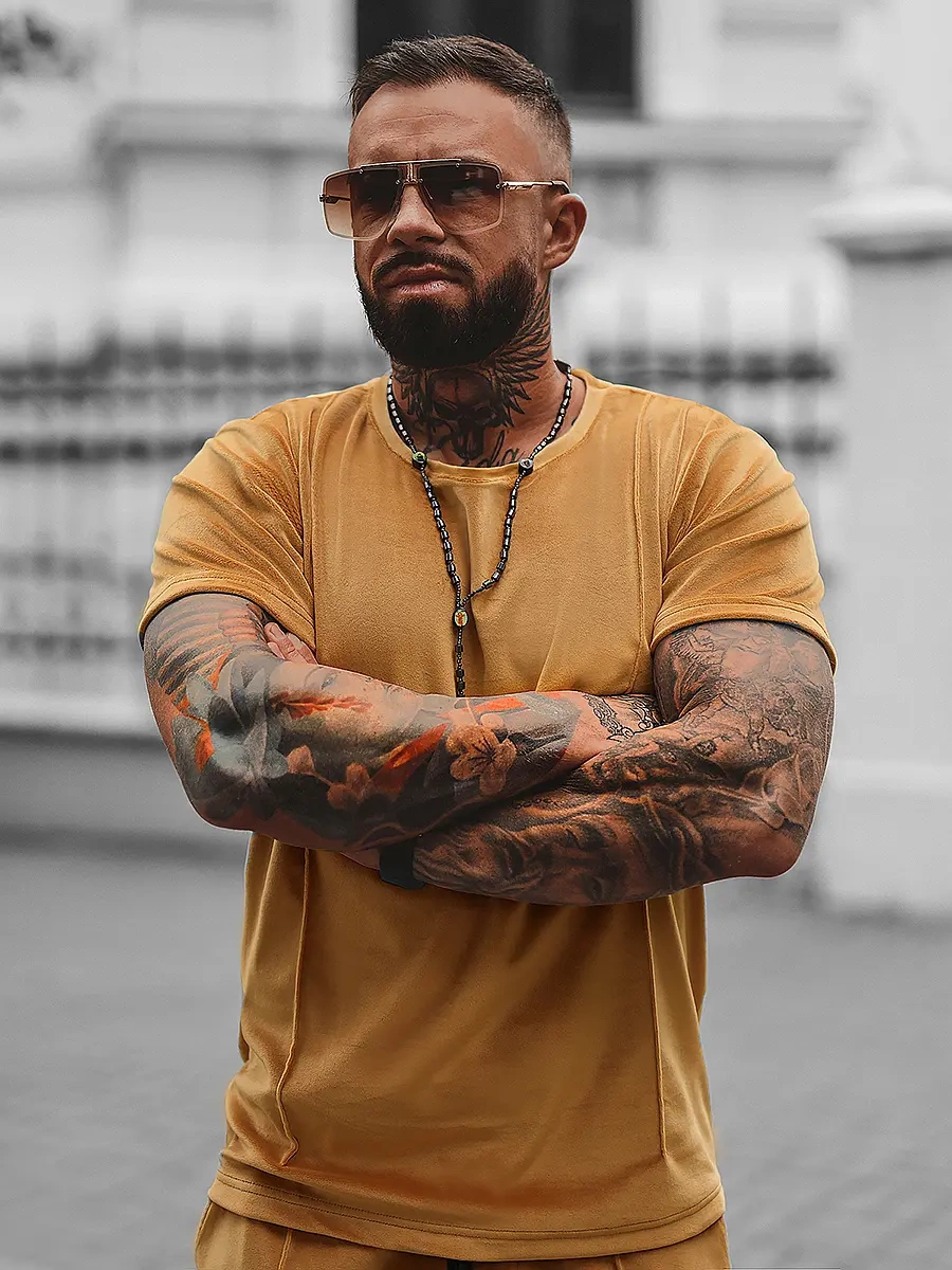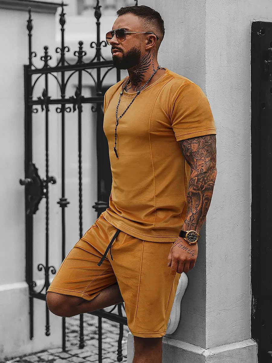 A mi legújabb férfi velúr melegítő szettünk OZONEE O/12133 összeállítja a komfortot és a funkcionalitást, ideális a mindennapokra. A szett tartalmazza a rövid ujjú pólót, továbbá a nadrágot praktikus oldalsó zsebekkel.