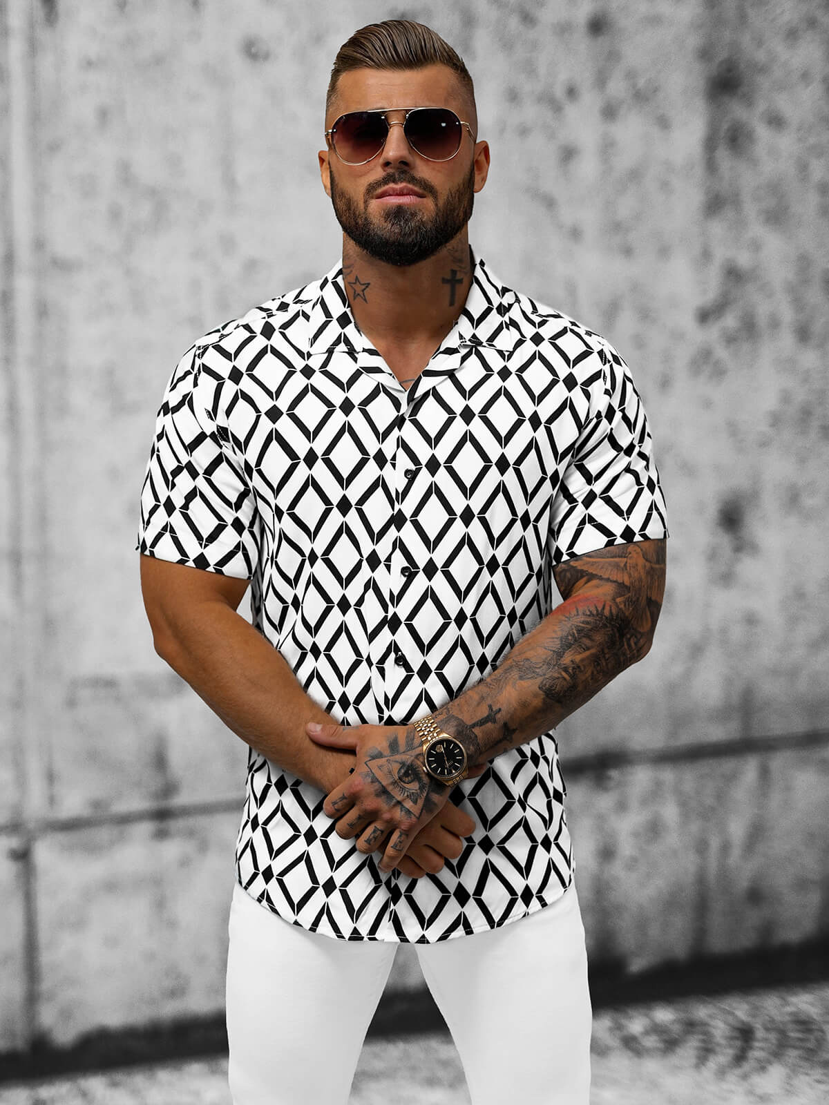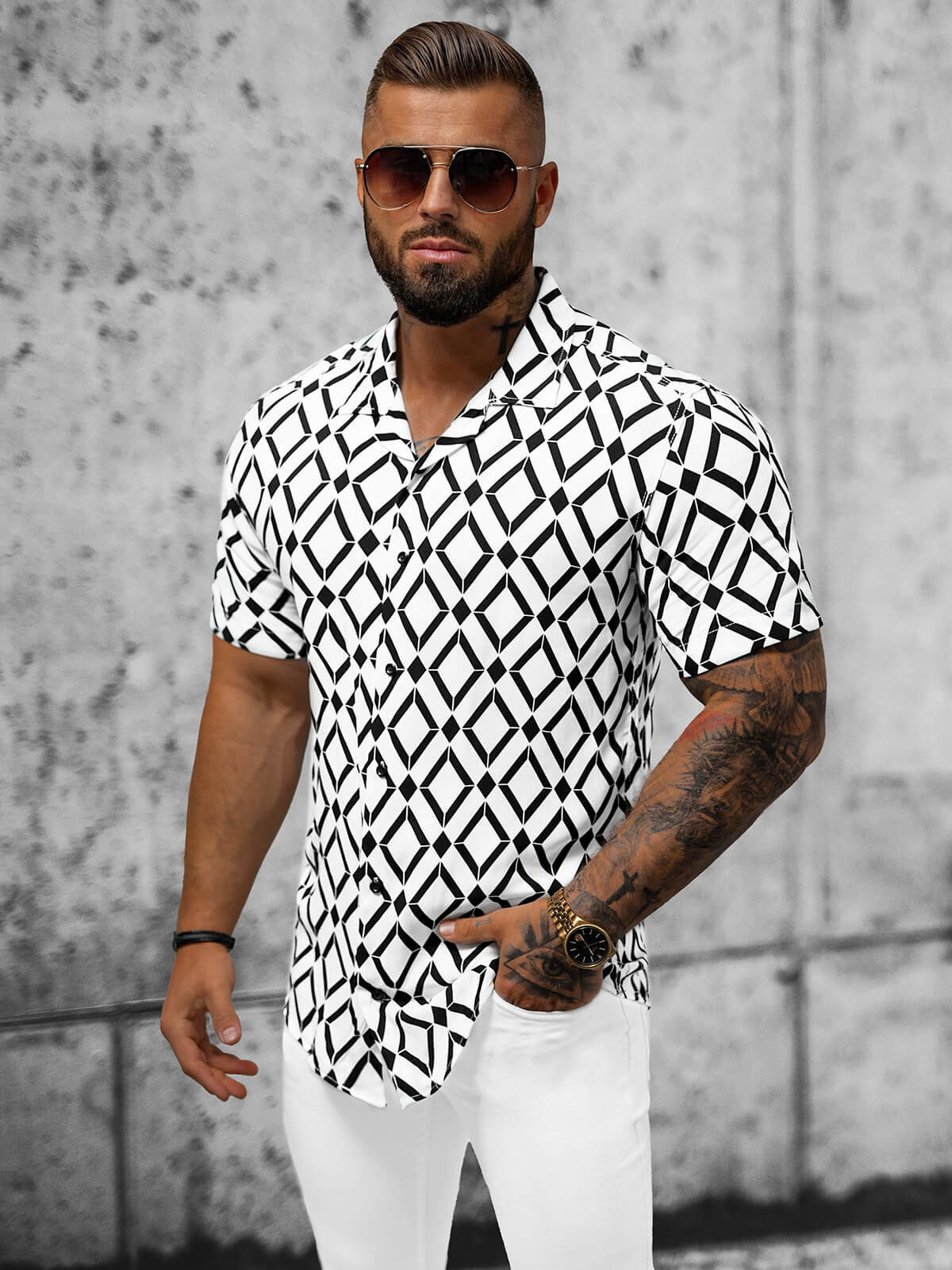 Legfontosabb információ: Rövid ujj, kubai gallér, eredeti rombusz mintázat, begombolható.