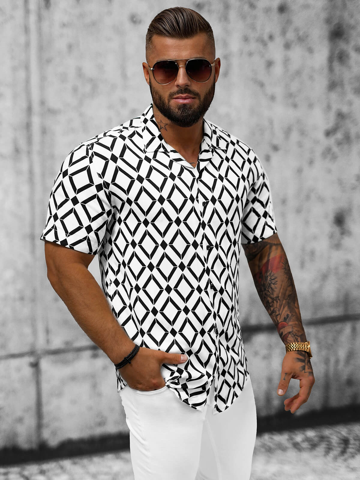 A mi modellünk, eredeti mintázattal rendelkezik rombusz formájában, ami újszerű kinézetet kölcsönöz. A gyártás során 100% pamutot használtak fel, ennek köszönhetően tartós és könnyű a tisztítása, ezért ez egy ideális választás lehet a mindennapokra, de a speciális eseményeken is megállja a helyét. Fehér - fekete ing az Ozonee-tól ez egy ideális összeállítás a komfortnak, stílusnak és funkcionalitásnak, ki fogsz tűnni a tömegből és megjelöli a te egyedi stílusodat.