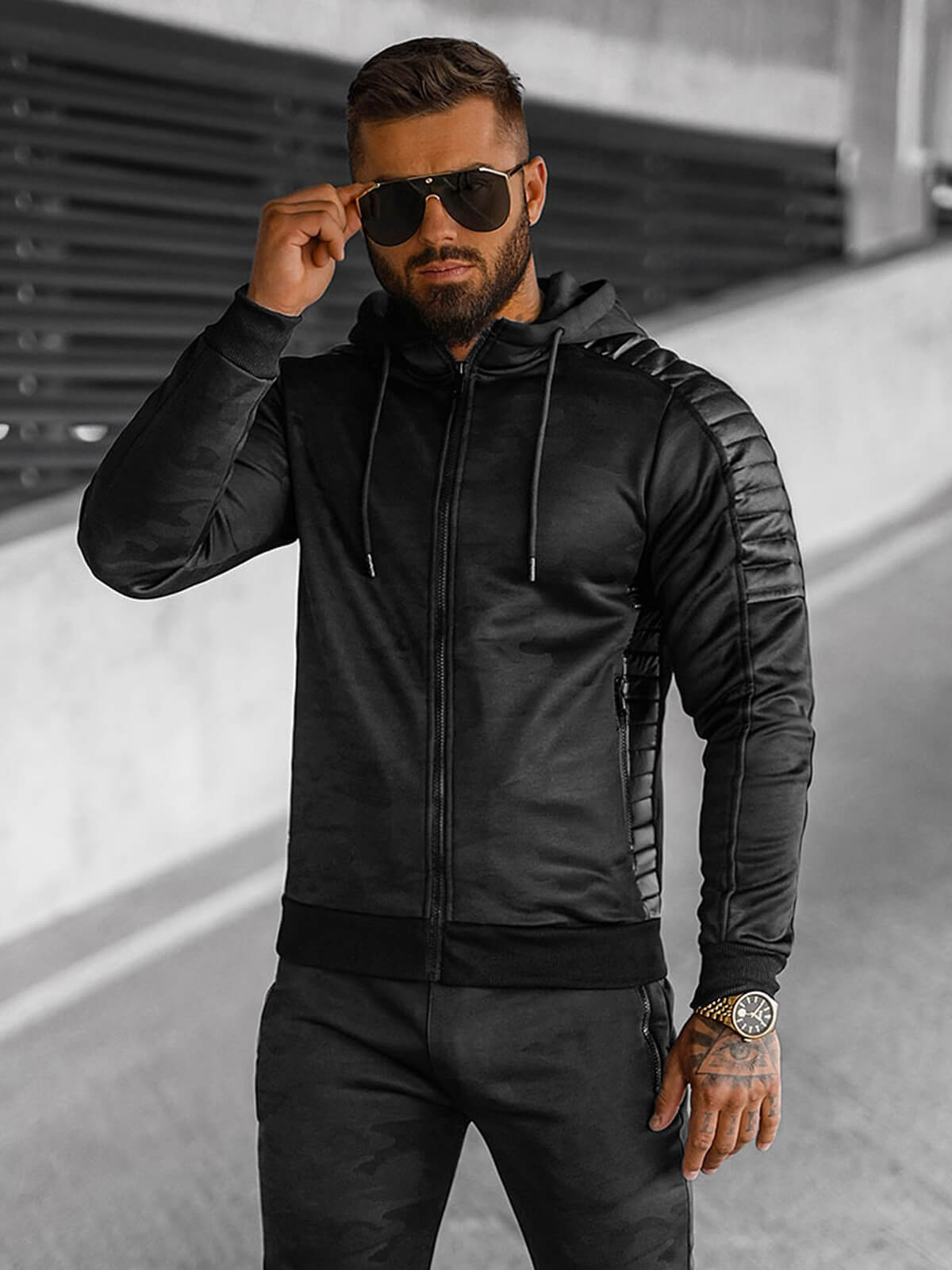 A szett kettő darab részt tartalmaz. Az egyik a kigombolható kapucnis pulóver, a másik - nadrág oldalsó zsebekkel. Az alsó és ujj része pánttal végződik, ami az egész testnek sportos karaktert biztosít. A beépítéseknek köszönhetően ökobőrből, és a katonai mintának köszönhetően, az egész rendkívül hatásosan néz ki. A gyártásához kiváló minőségű poliésztert használtak fel, ennek köszönhetően szépen illeszkedik a testalkathoz, és nem gyűrődik.