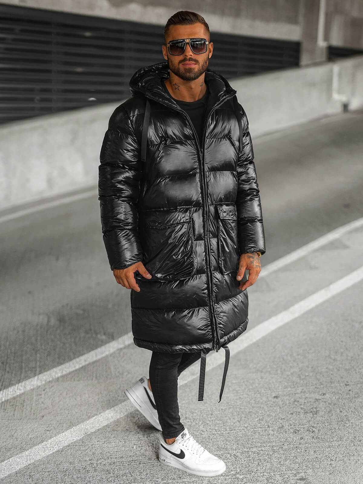 Férfi télikabát hosszú fekete OZONEE O/M3205Z