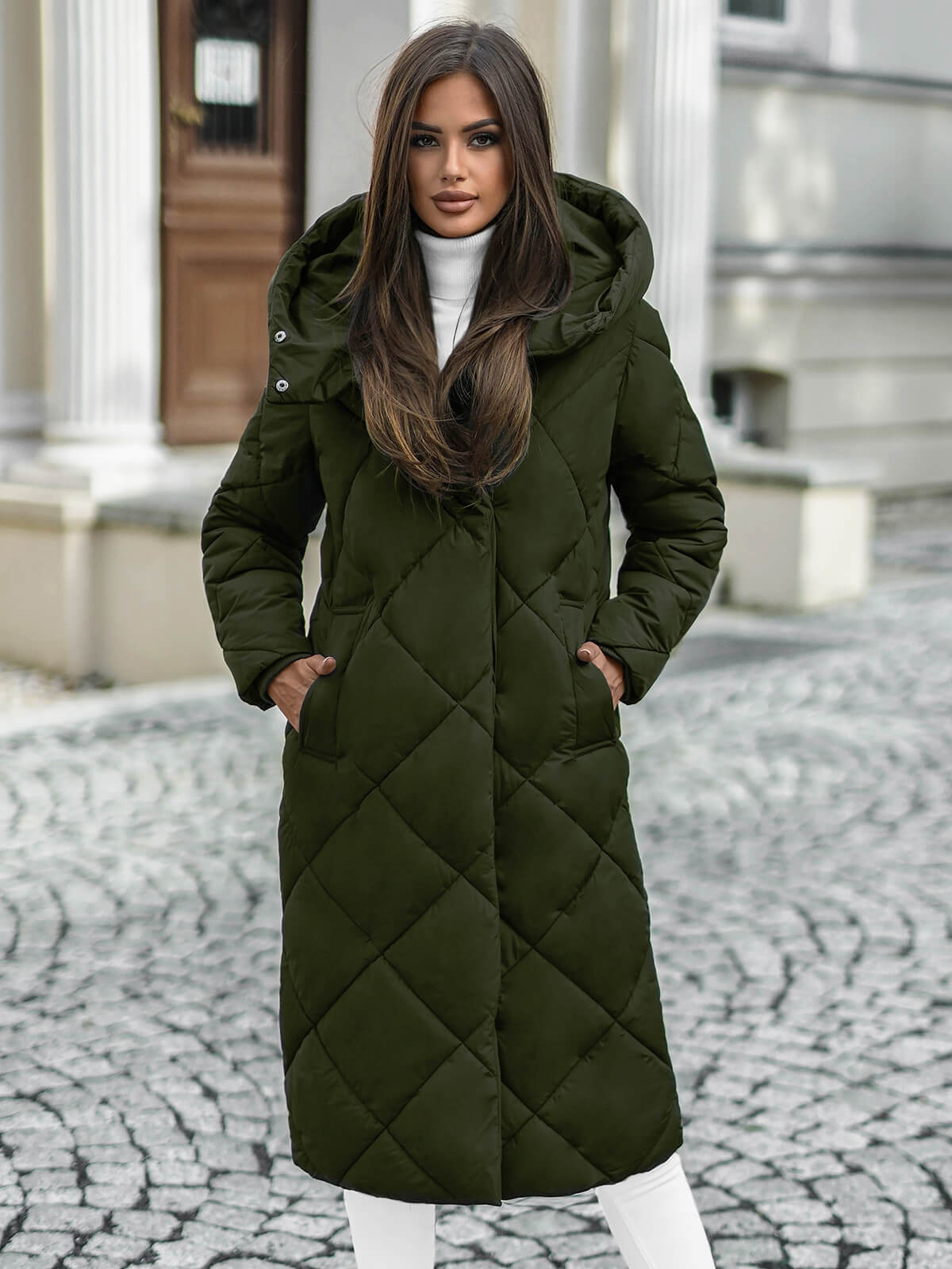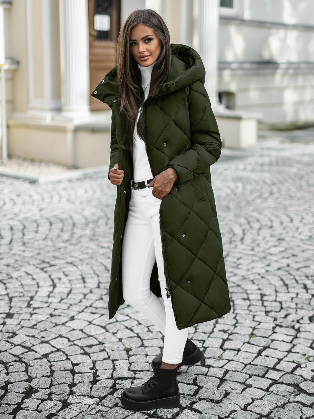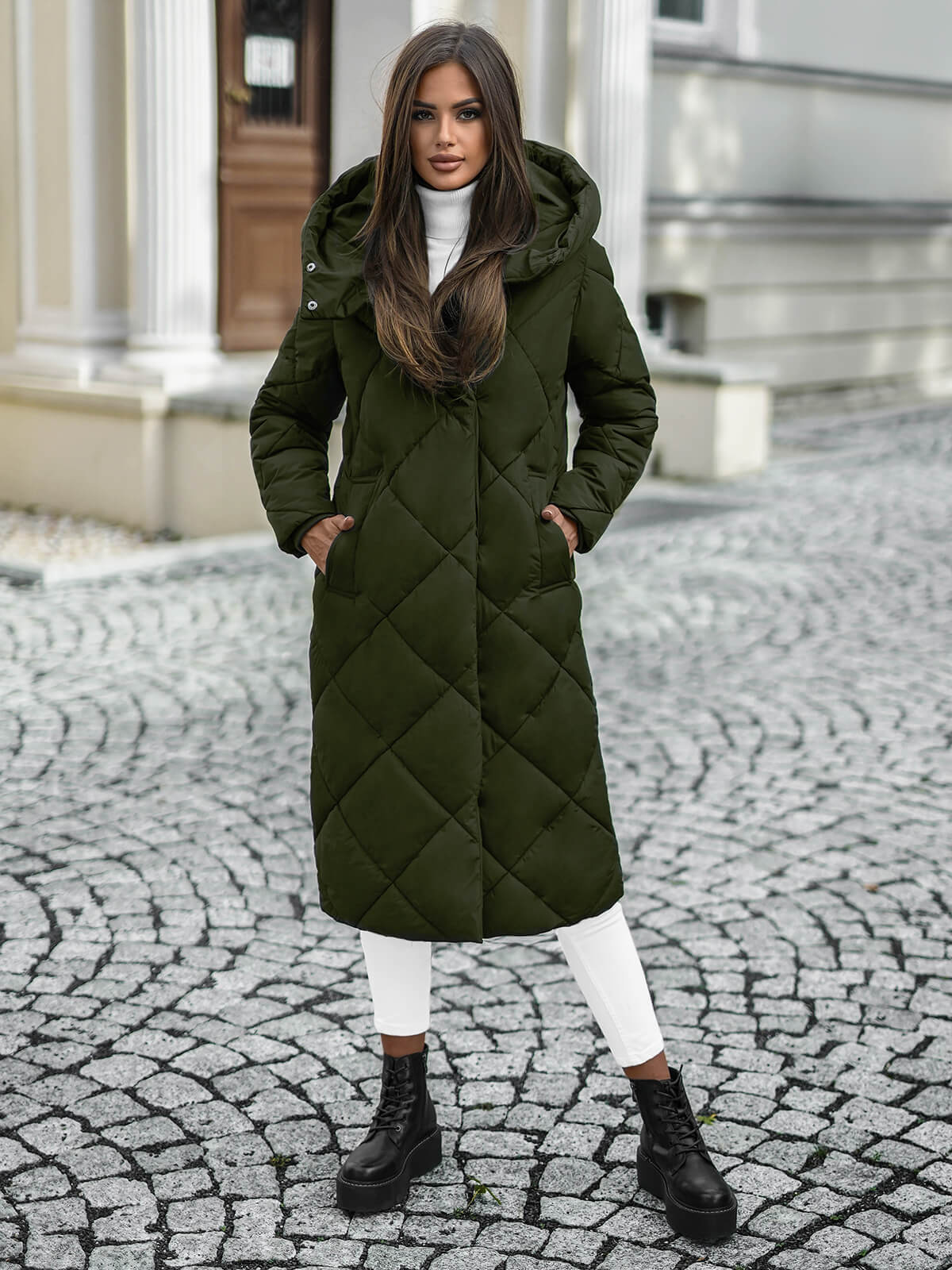 Női téli kabát hosszú steppelt zöld OZONEE JS/5M3173/136