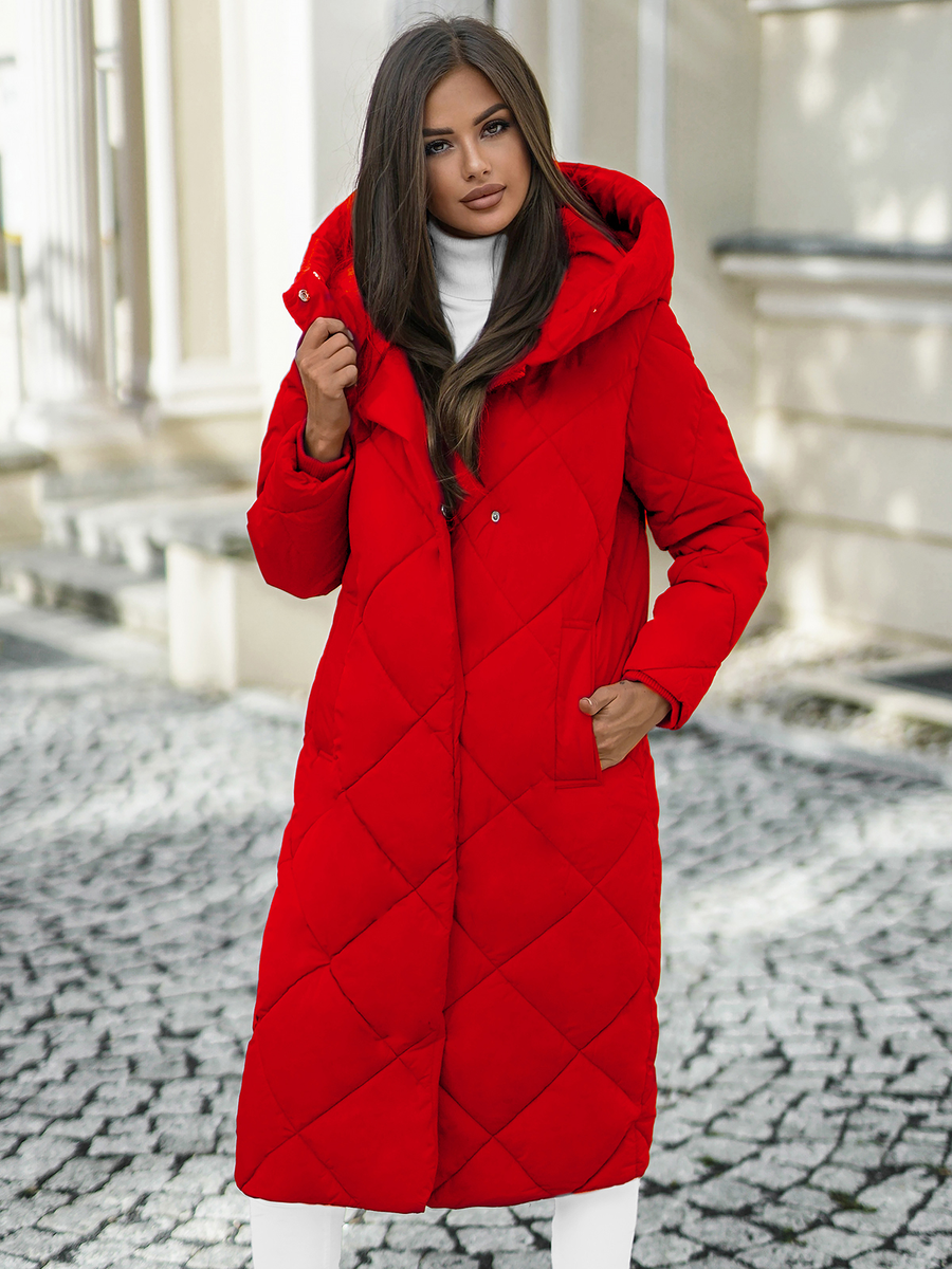 Az OZONEE JS/5M3173/270Z női hosszú steppelt télikabát piros színben kiváló választás a hétköznapokra, munkába, sétára vagy egy hétvégi kirándulásra a városból. Tökéletesen passzol farmerrel, pulóverrel és csizmával, hogy divatos és meleg szettet alkosson a télre. Elegáns nadrággal és tűsarkú cipővel is viselheti, hogy egy esti szórakozáshoz tökéletes megjelenést hozzon létre. Sokoldalúságának köszönhetően ez a kabát sokféle öltözékhez illik.