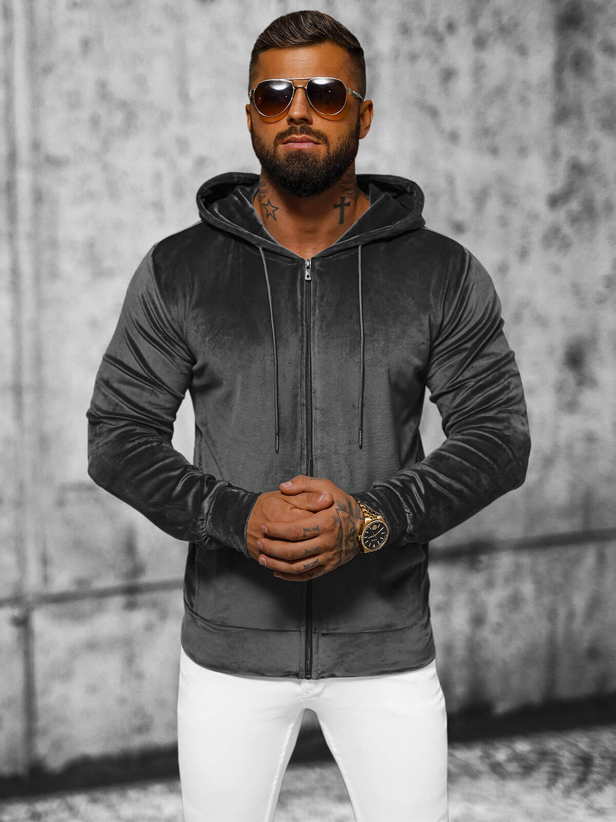 Férfi grafitszínű velúr kapucnis pulóver OZONEE JS/8B1168/6 - tökéletes minden alkalomra