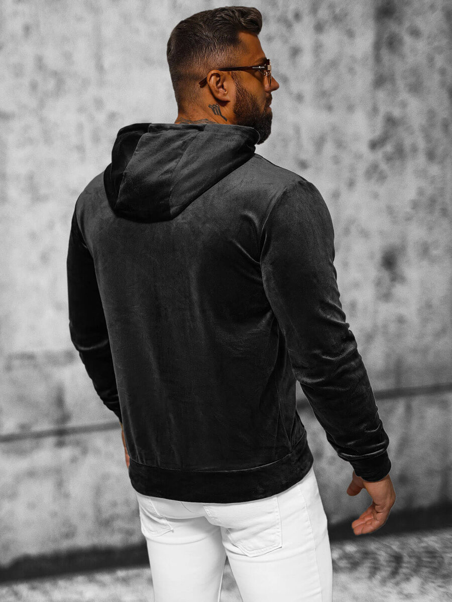 Férfi velúr kapucnis pulóver fekete OZONEE JS/8B1168/3 - stílus és kényelem egyben