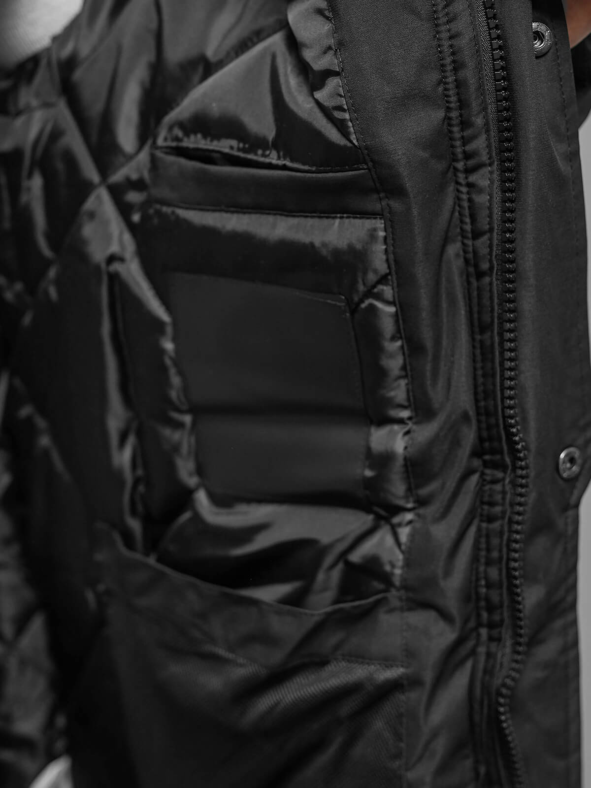 Férfi steppelt télikabát fekete OZONEE JS/5M3135/392