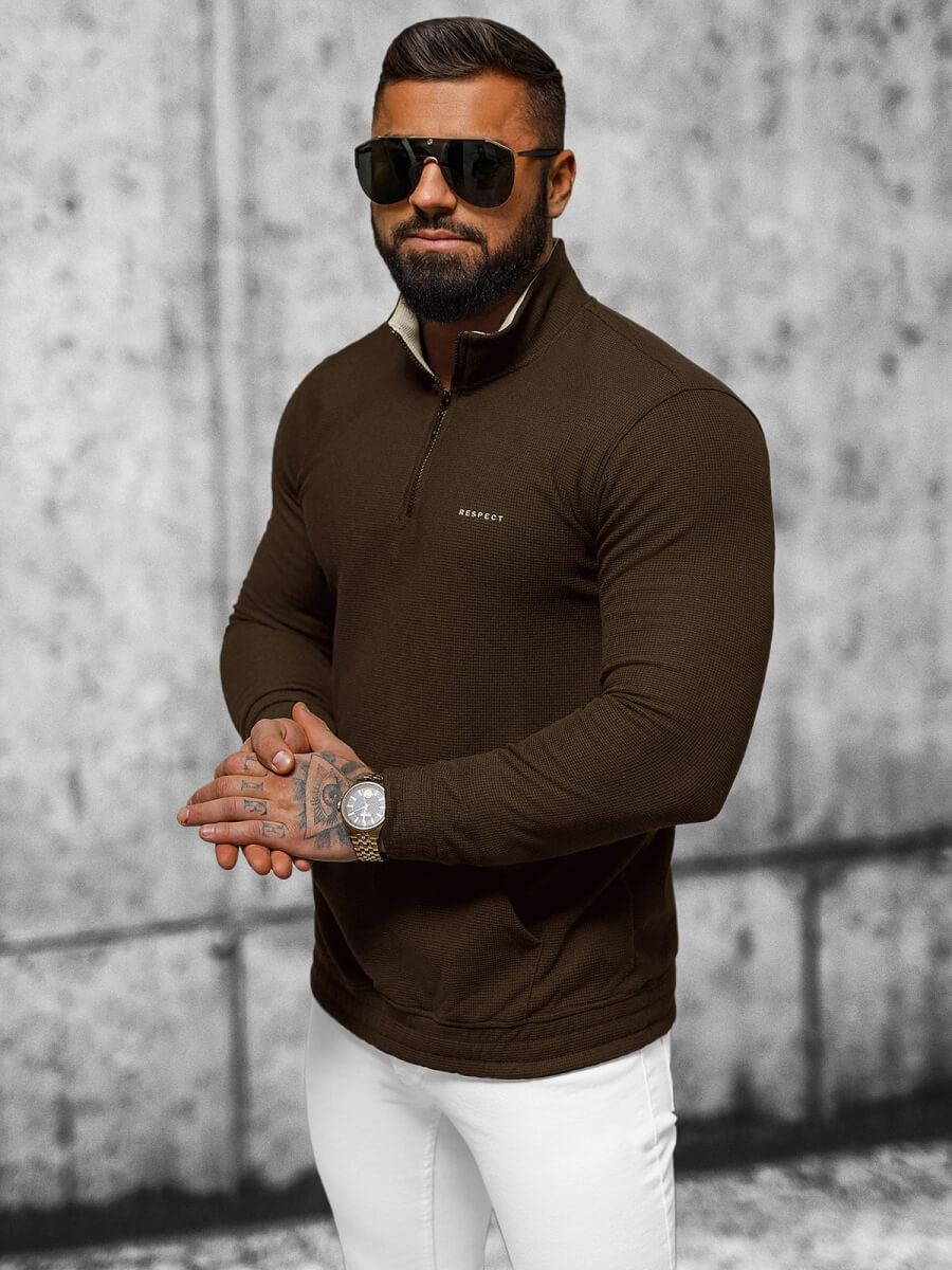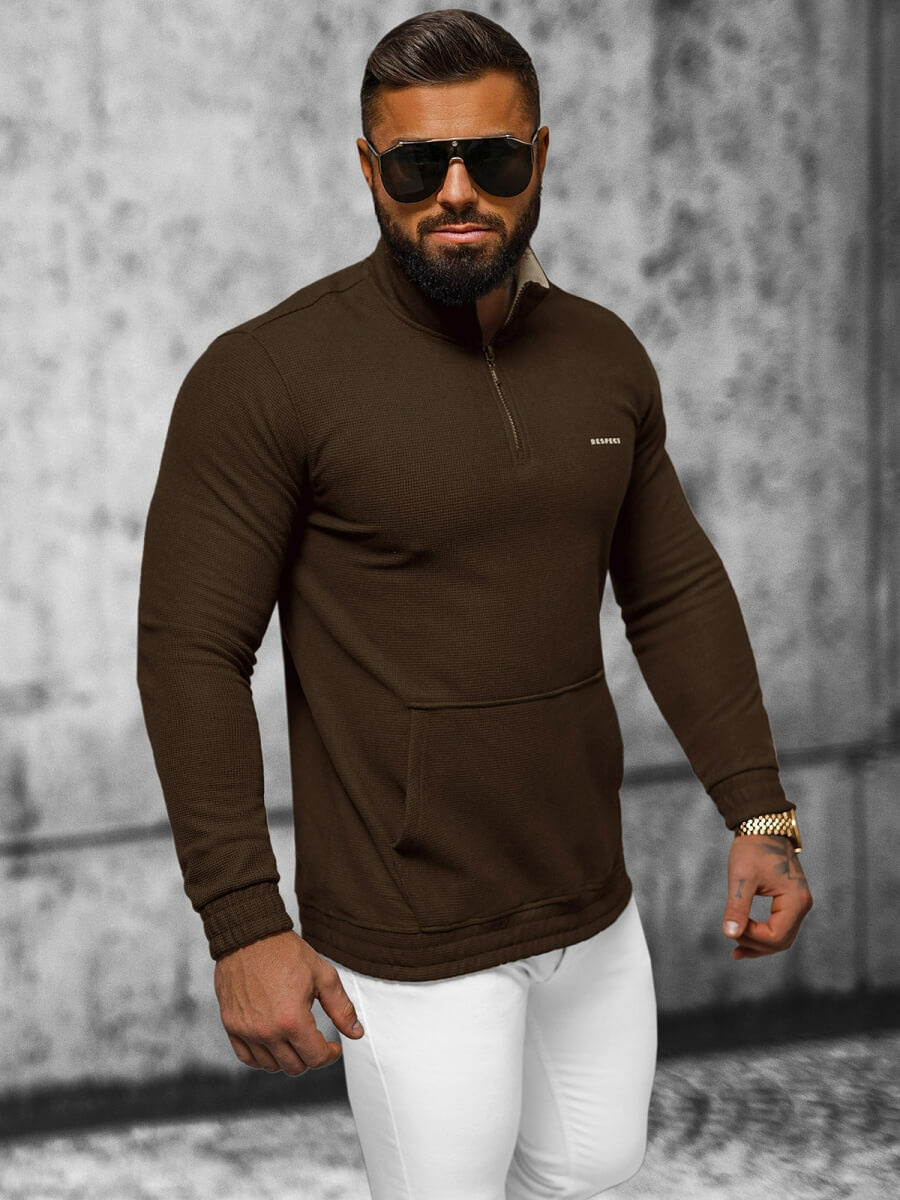 Férfi barna pulóver OZONEE O/TB2302 - stílus és kényelem egyben