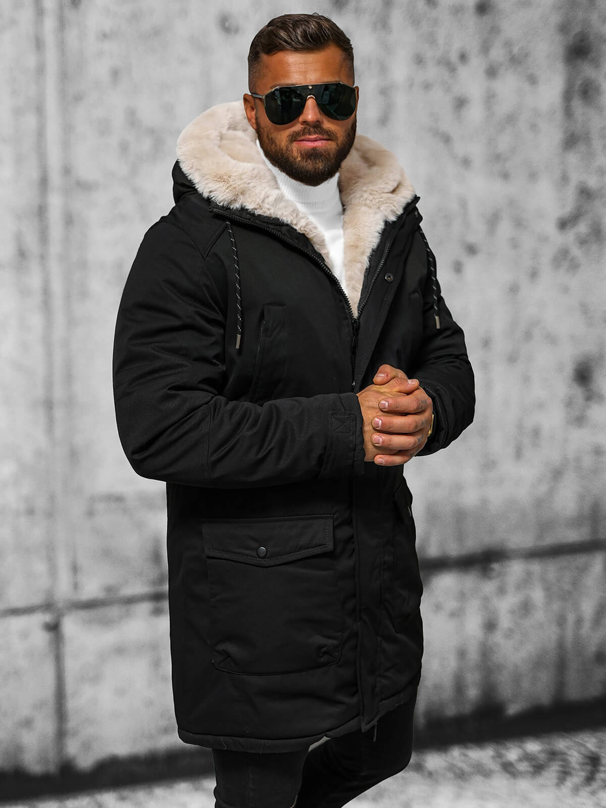 A férfi télikabát fekete OZONEE JS/5M120/392 tökéletes választás a téli napokra. Tökéletes lesz a sétához és a mindennapi viselethez egyaránt. Számos stílussal kombinálható - az alkalmiaktól az elegánsabbakig. Univerzális színösszeállításának köszönhetően jól illik a férfi ruhatár legtöbb ruhájához.