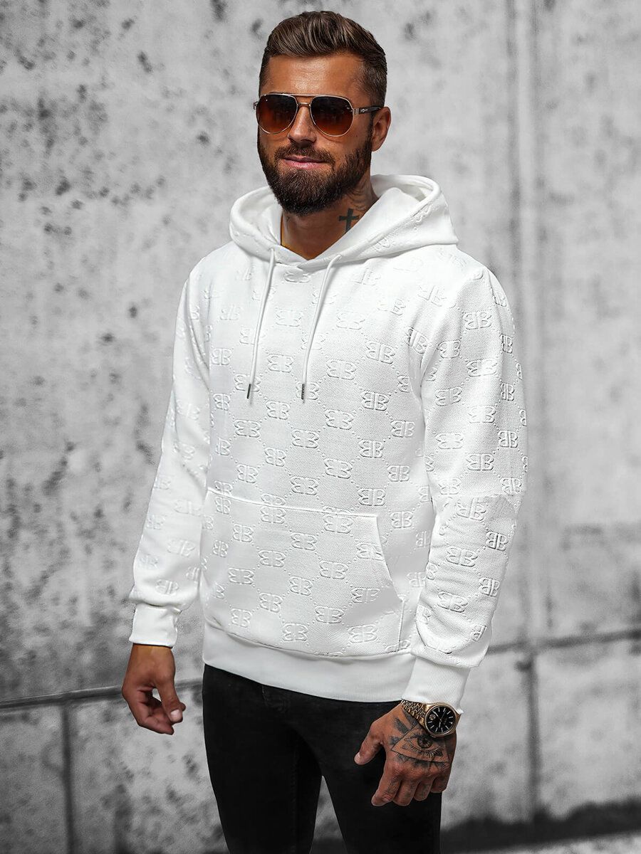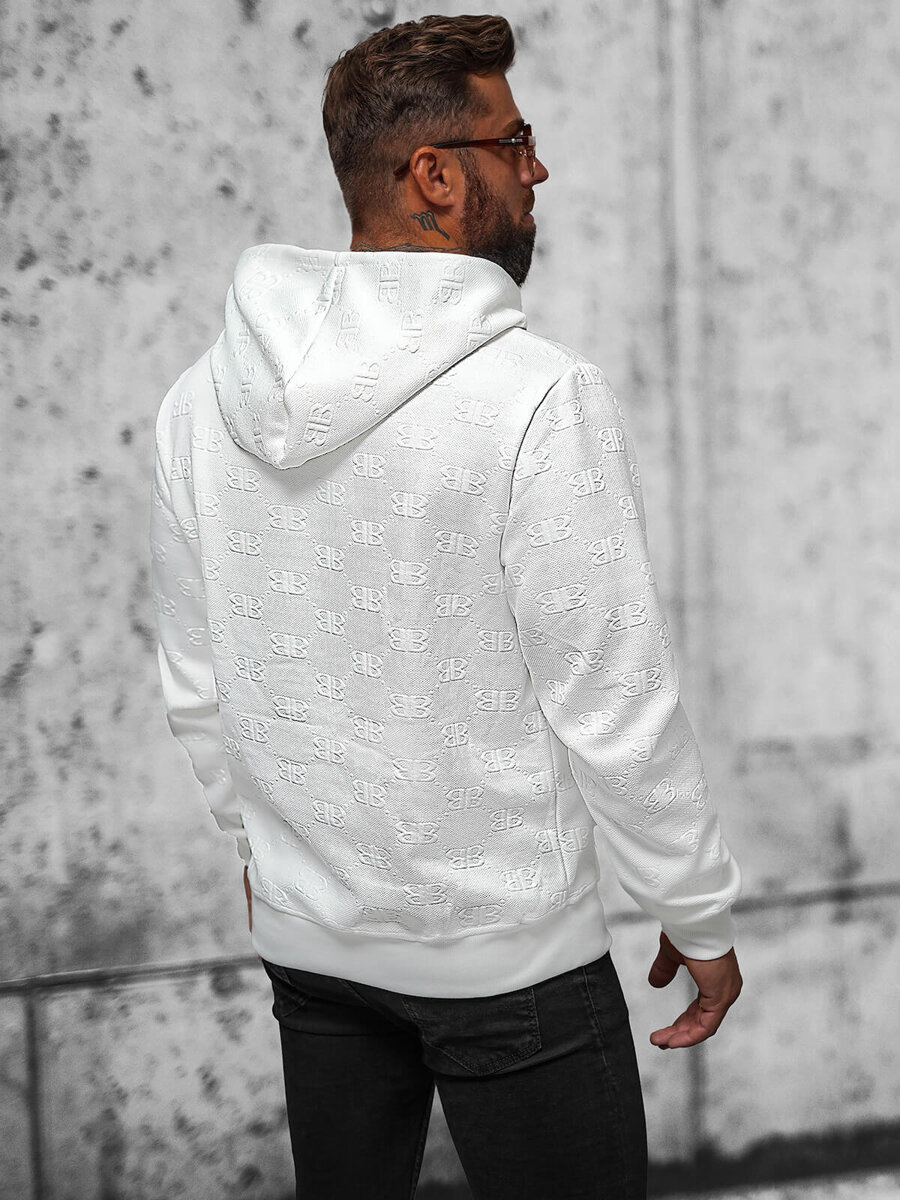 OZONEE férfi fehér kapucnis pulóver JS/3B566