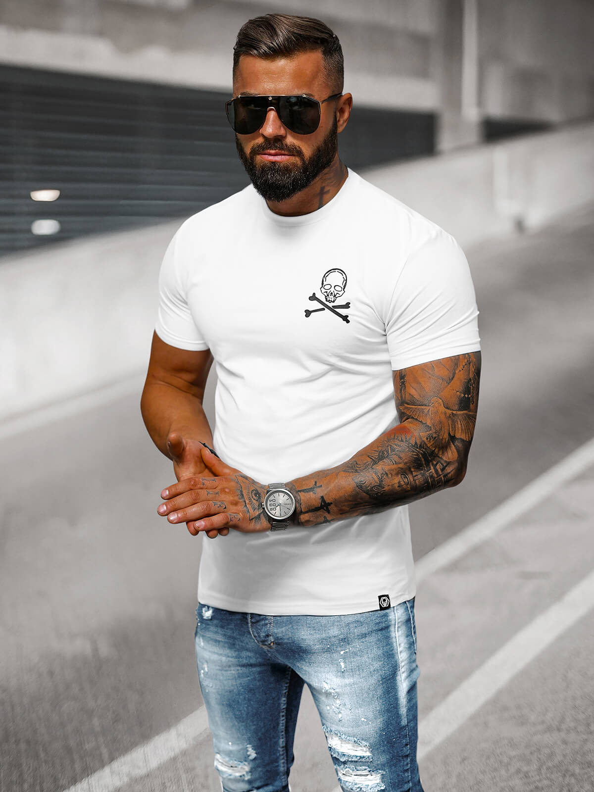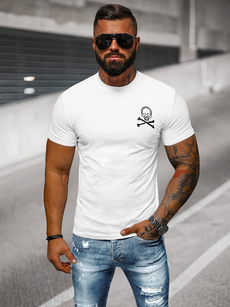 Modern férfi slimfit póló fehér OZONEE NB/MT3066 - divatos kiegészítője a ruhatárának