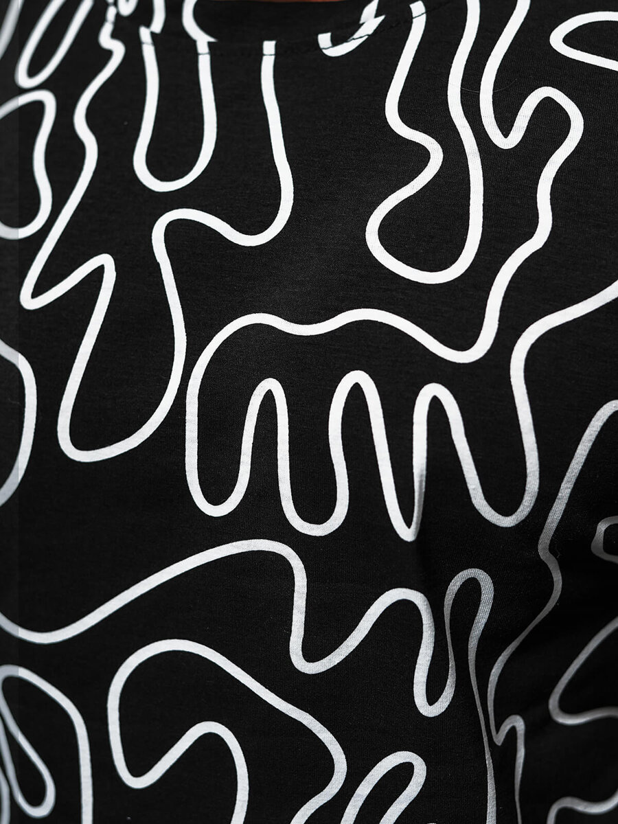 Rendkívül stílusos Fekete férfi póló OZONEE JS/8T1198/3