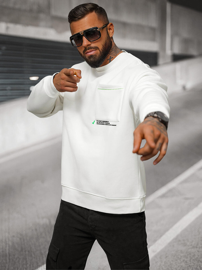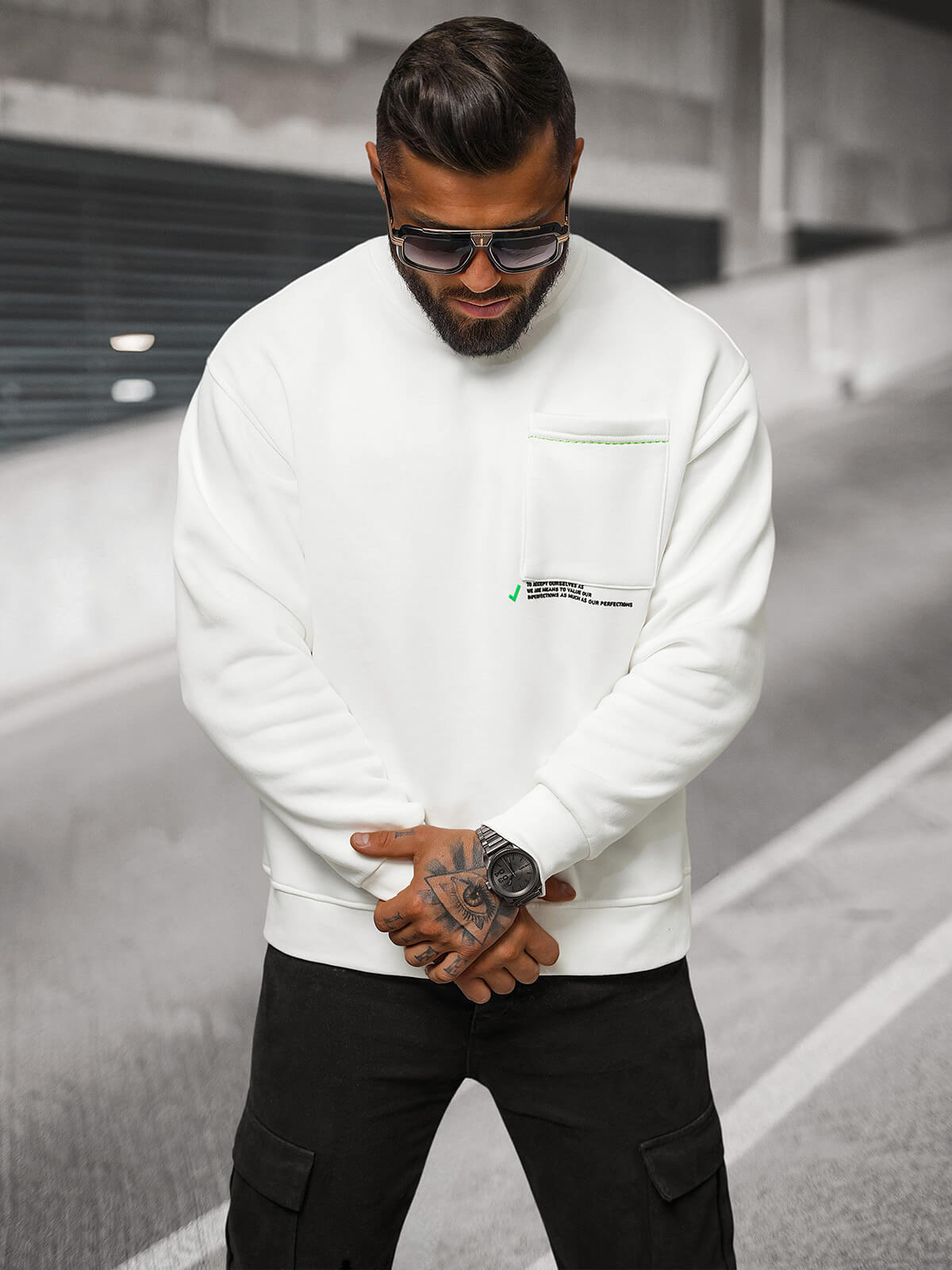 Férfi oversize pulóver fehér OZONEE O/SWE23034 - divatos kiegészítője a ruhatárának