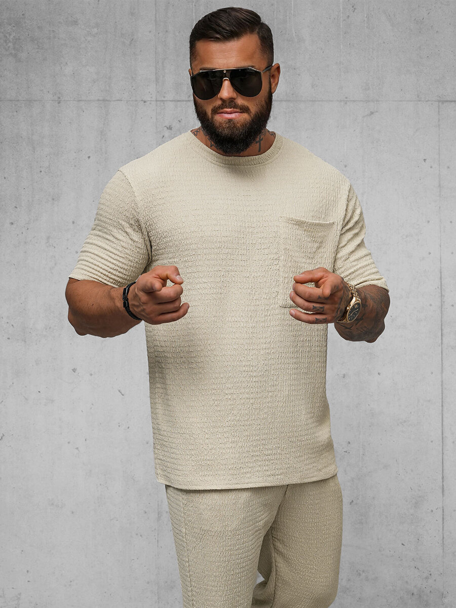 Kivételes stílus és kényelem - Férfi bézs színű OZONEE O/Y960T póló