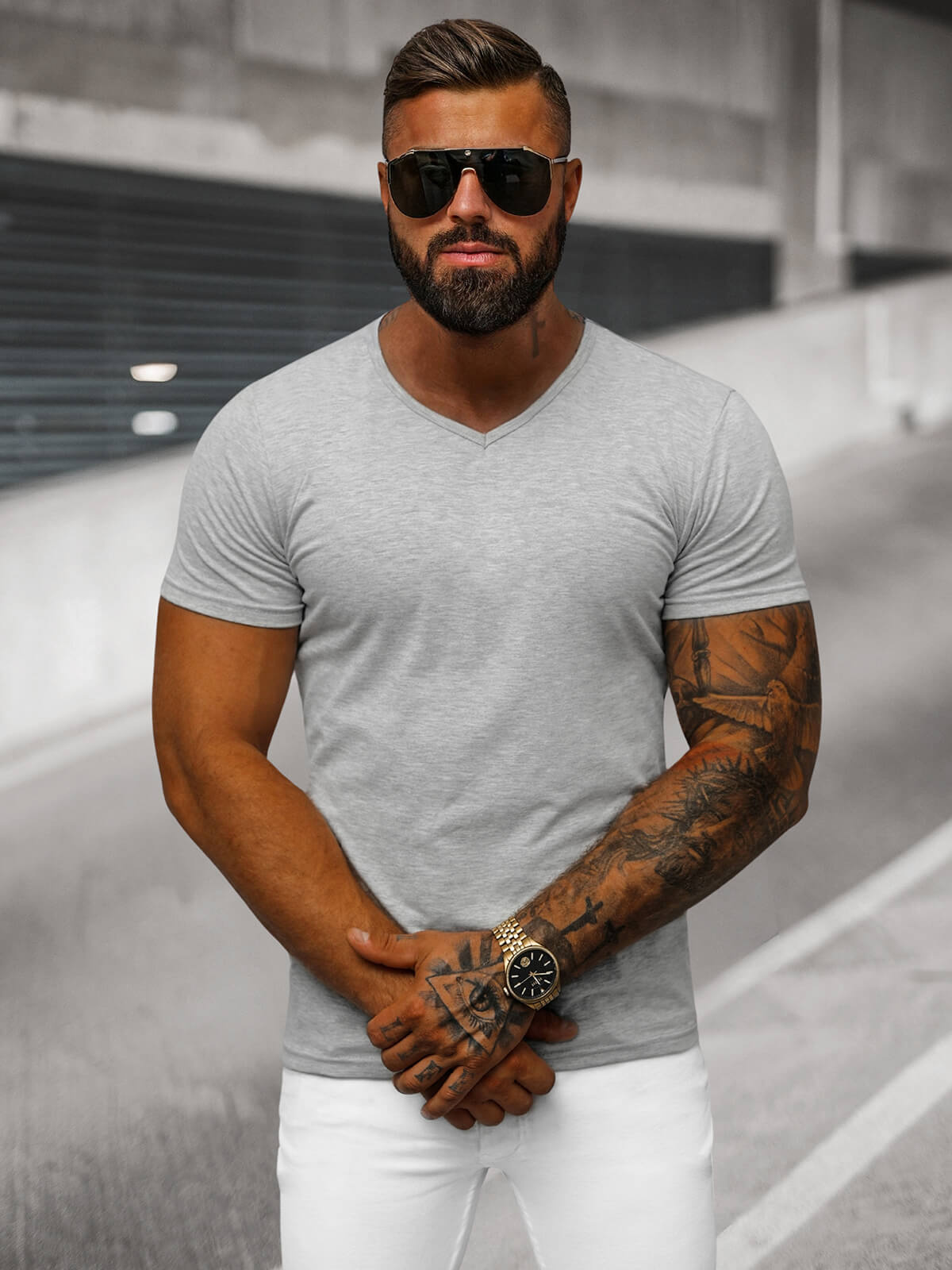 Stílusos és kényelmes Férfi nyomtatás nélküli póló szürke OZONEE JS/712007Z