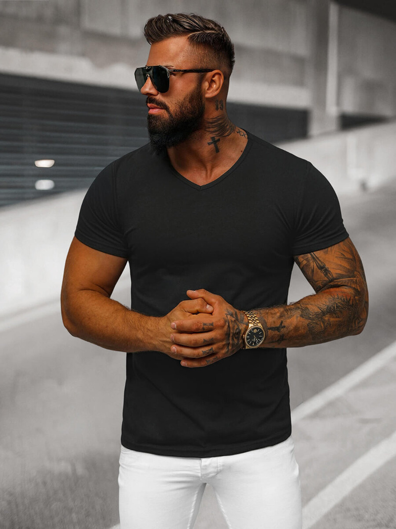Férfi nyomtatás nélküli póló fekete OZONEE JS/712007Z - Stílus és kényelem egyben